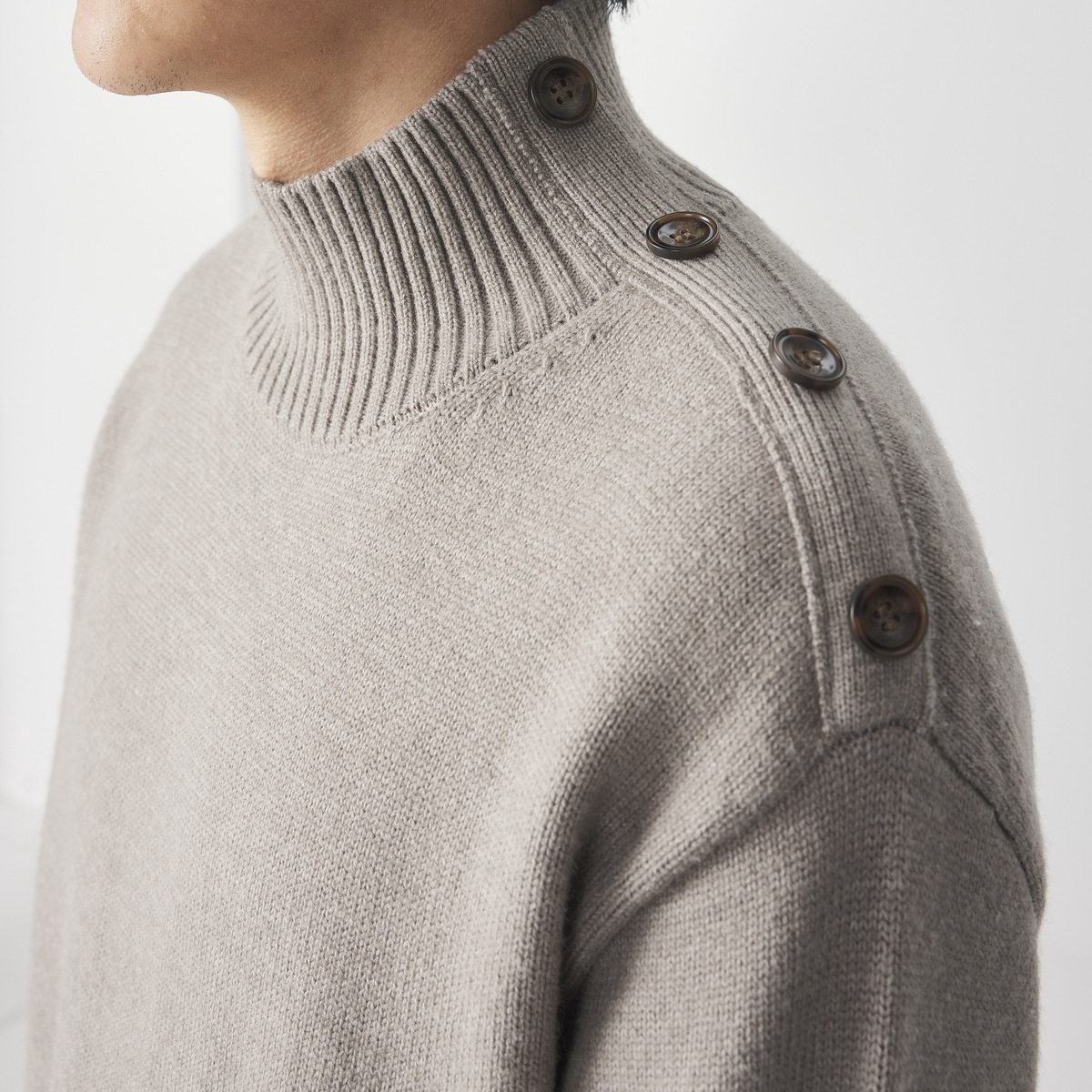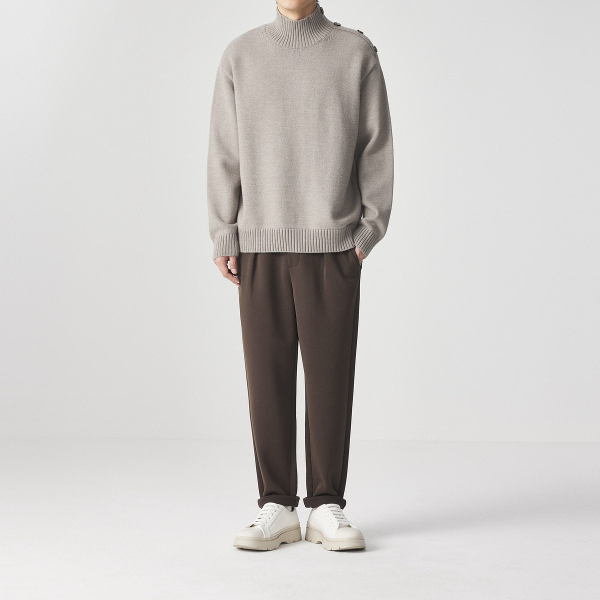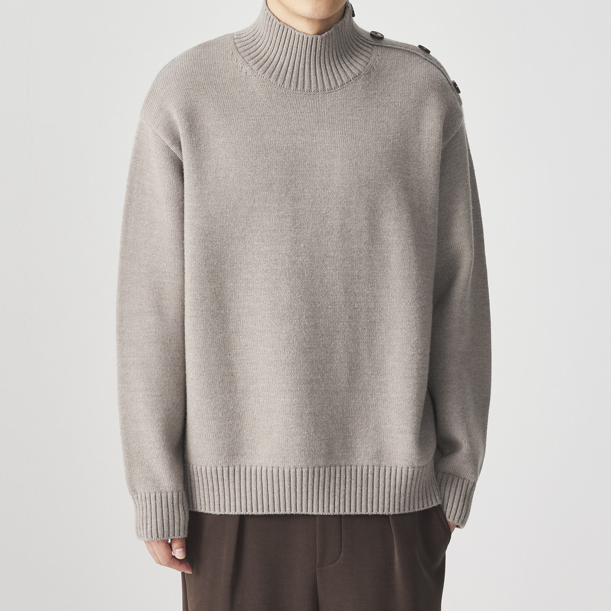 📚 墨麦客男装 不对称半高领 单面针织衫冬季新款纯色休闲宽松毛衣