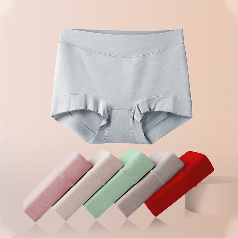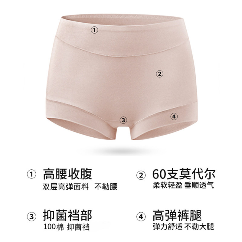 📚 莫代尔内裤女高腰收腹平角裤棉抑菌裆无痕打底裤大红色本命年裤头