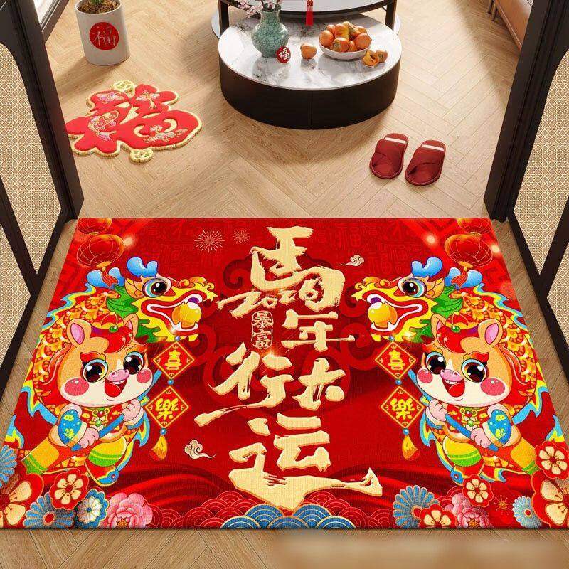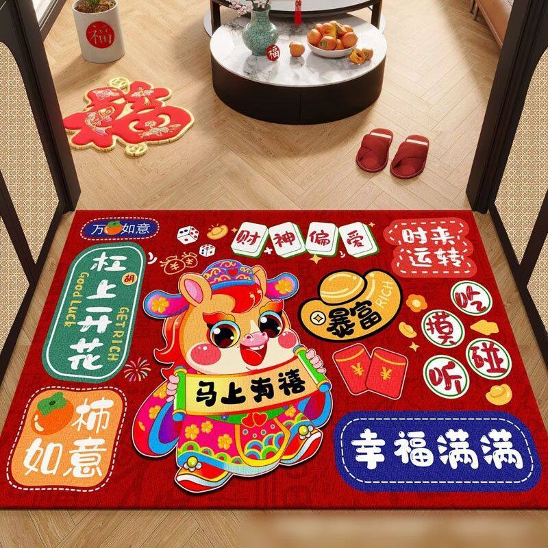 📚 2026马年地垫入户门垫新年进门喜庆脚垫子吸水浴室大门口红色地毯