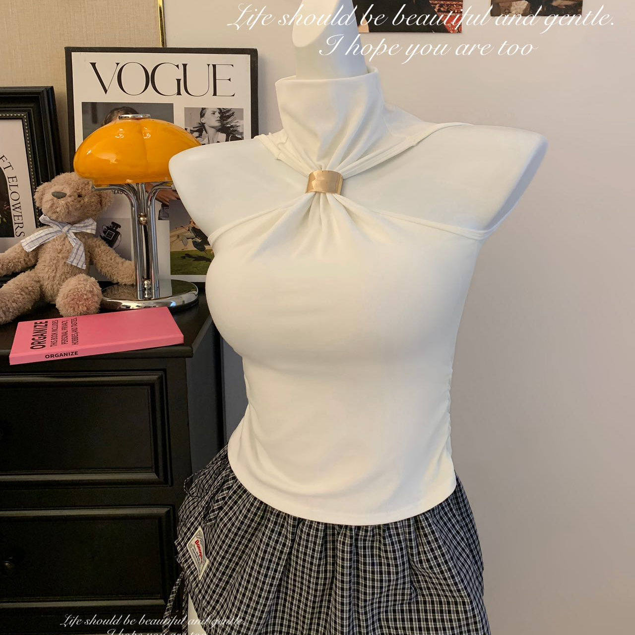 📚 纯欲风金属扣挂脖背心女内搭外穿带胸垫高级感气质百搭打底衫上衣