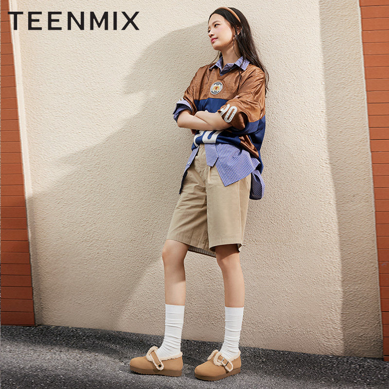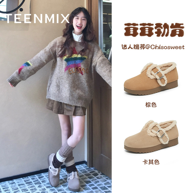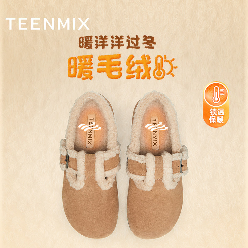 📚 天美意厚底加绒保暖毛毛鞋勃肯鞋女雪地靴短靴冬新款BK221DM4