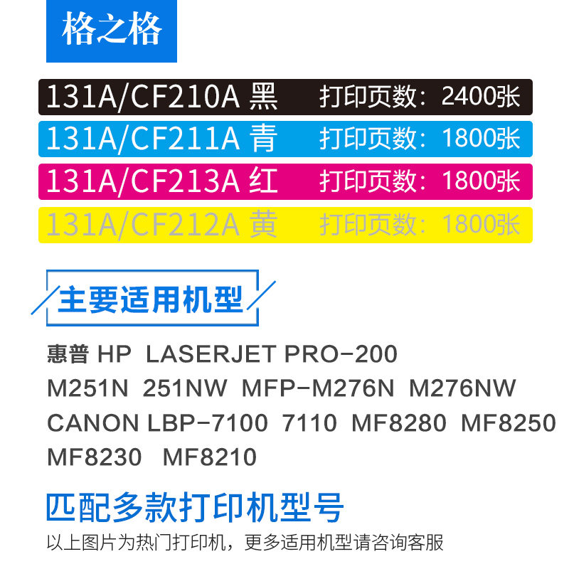 📚 格之格CF210A硒鼓 适用惠普 M251 M276 PRO 200墨盒 佳能CRG331 7100 7110 8210 CF213A 131A易加粉硒鼓M251N