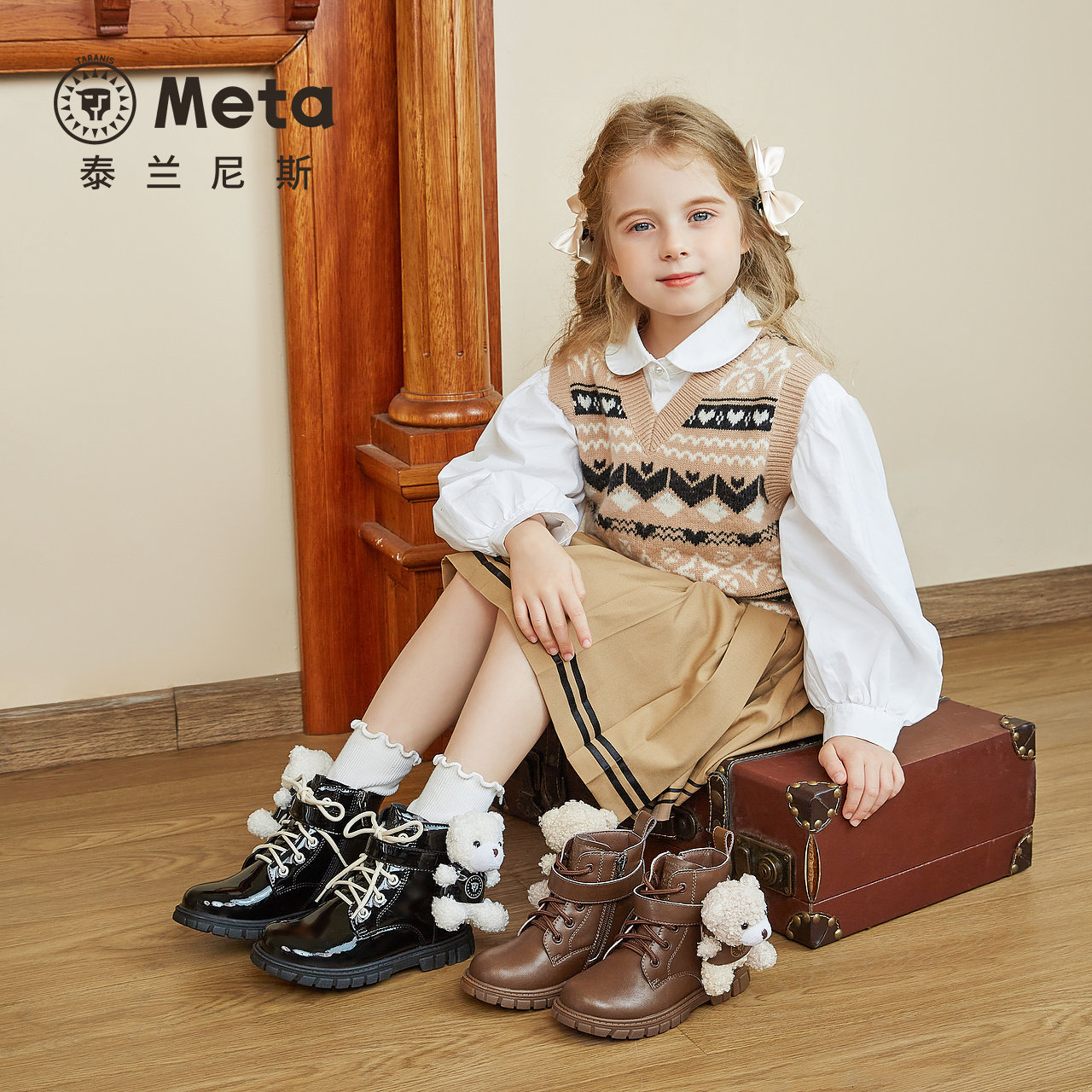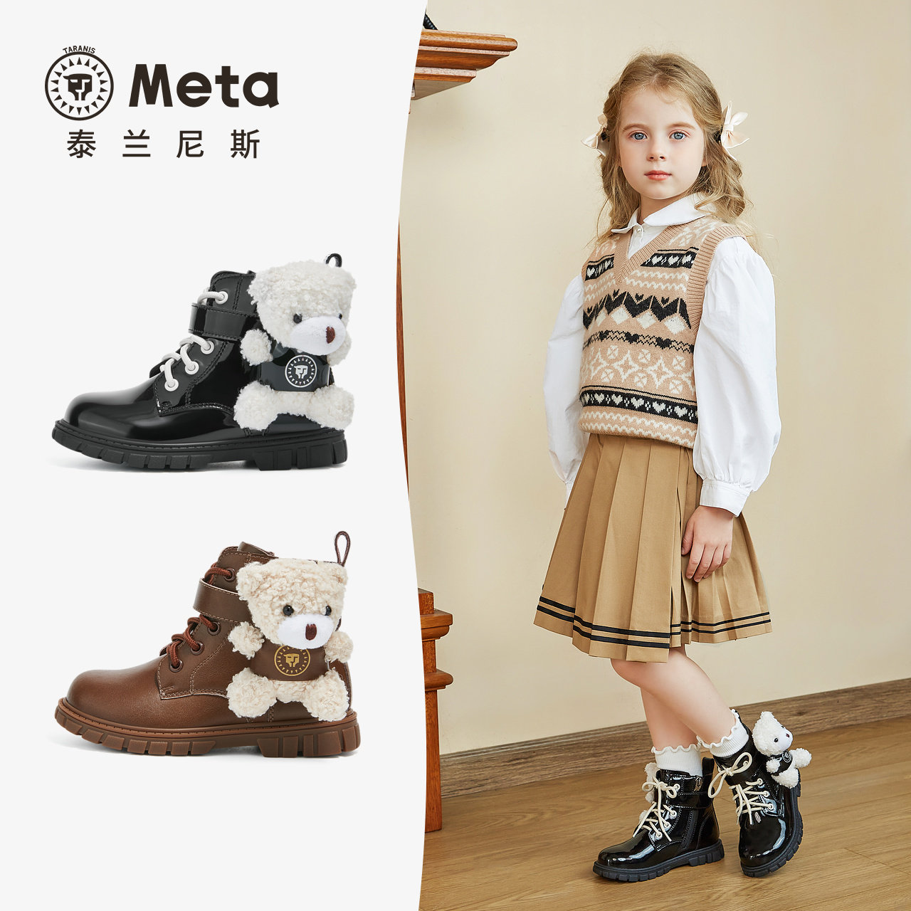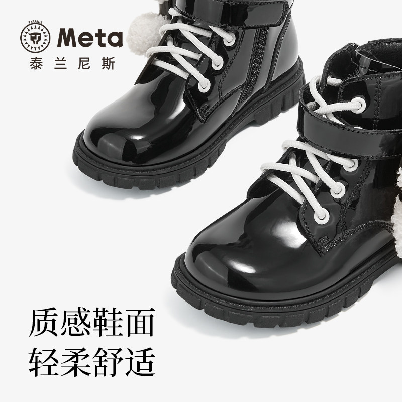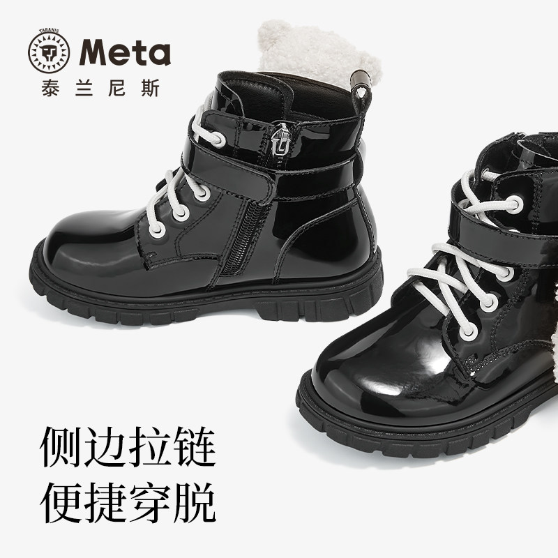 📚 泰兰尼斯女童meta皮靴2024秋季新款儿童马丁靴高筒女孩可爱短靴子