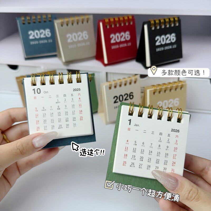 📚 2026迷你小台历高颜值简约纯色创意学生便携桌面小摆件复古小台历