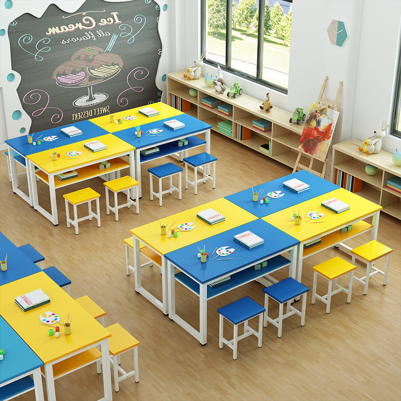 📚 小学生幼儿园辅导培训班课桌椅儿童画室美术绘画补习双人彩色桌椅