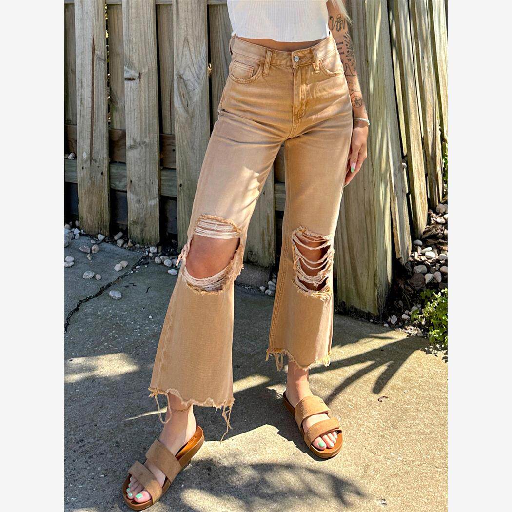 📚 Ladies' ripped straight leg jeans 女士破洞直筒牛仔裤