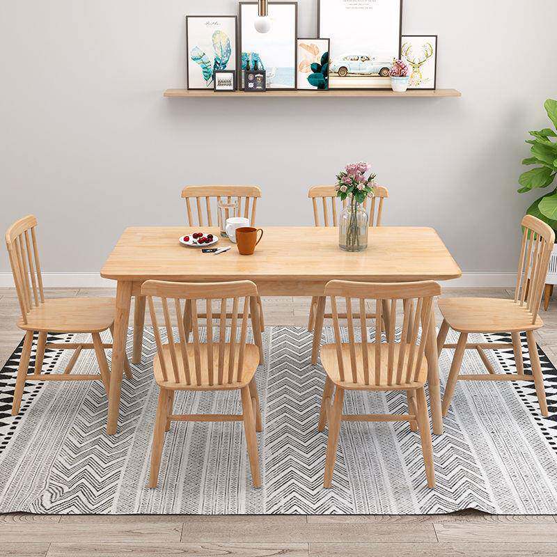 📚 北欧户全实见详情木餐桌家用小形型餐桌椅组合4人6人原木色长方饭