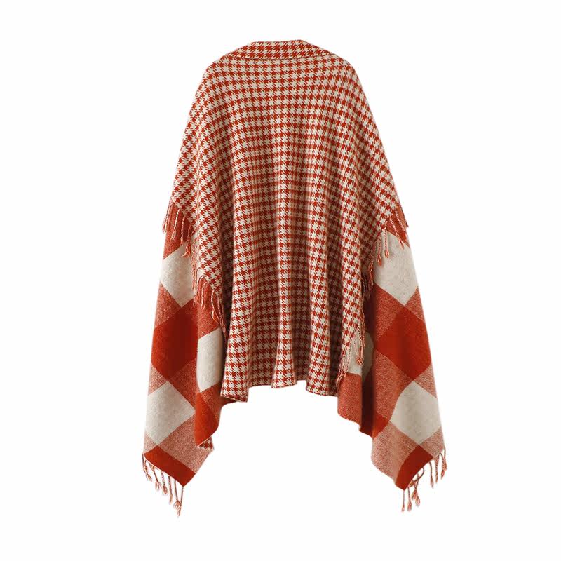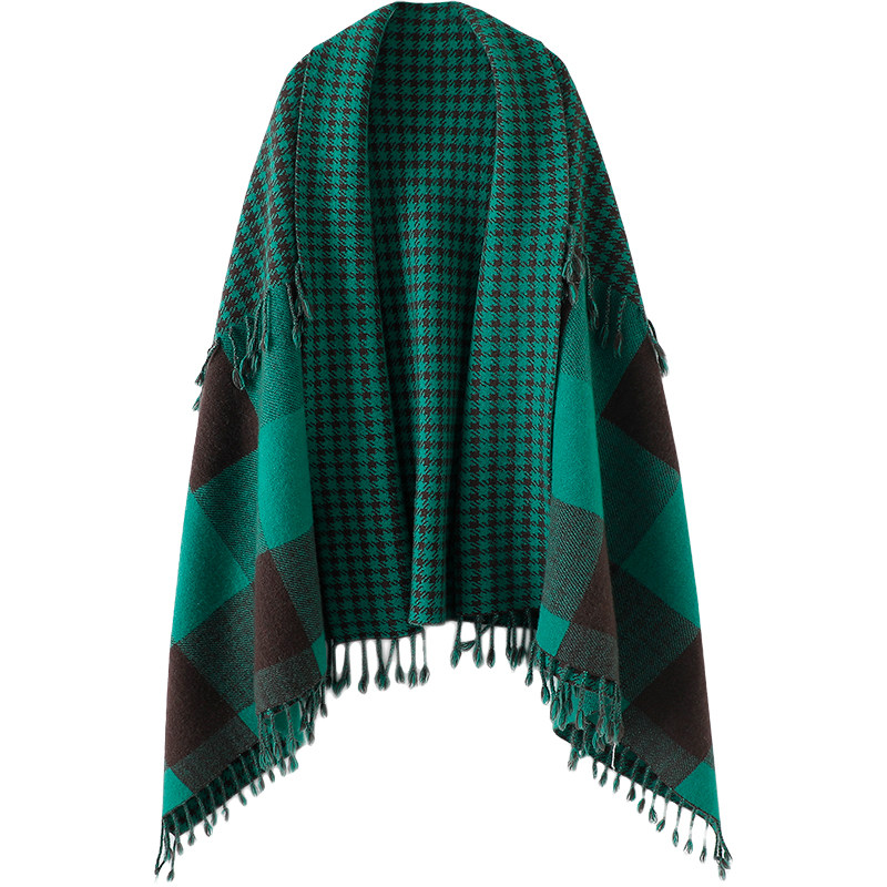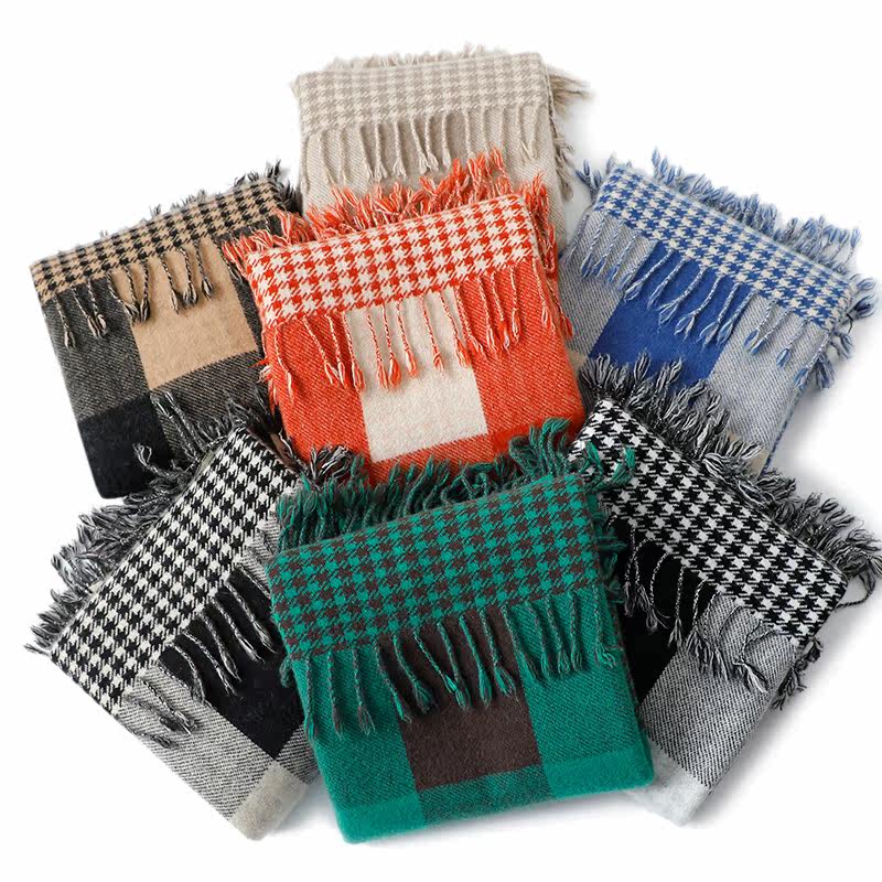 📚 气质氛围感!千鸟格子拼接流苏羊绒大披肩女纯羊绒围巾披风毯子厚