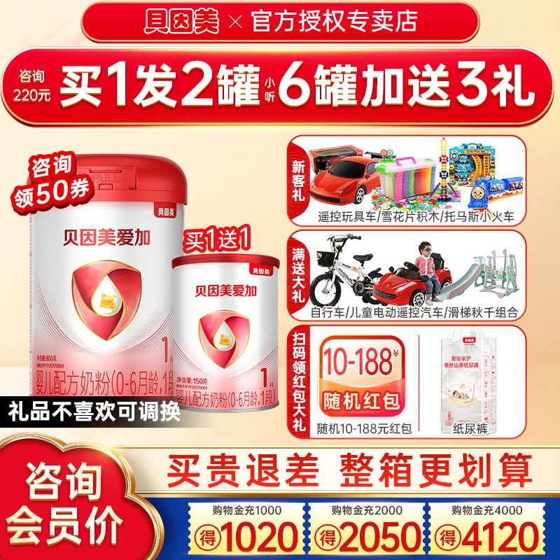 📚 买1送1罐】贝因美爱加1段奶粉婴幼儿乳铁蛋白奶粉一段800g旗舰店