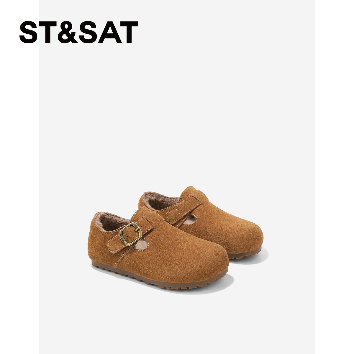 📚 星期六童鞋勃肯鞋女加绒保暖2025冬季新款女童休闲舒适一脚蹬皮鞋