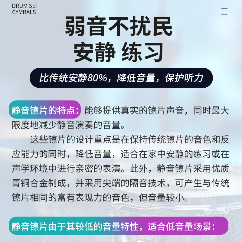 📚 架子鼓静音镲片弱音镲吊镲叮叮镲消音擦踩镲片套装14/16/18/20寸