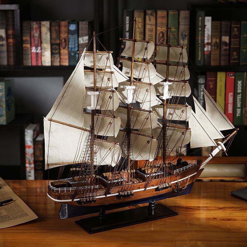 📚 1007-70cm帆船地艺中椴海风装饰办公室一帆风顺摆饰木制工品格模