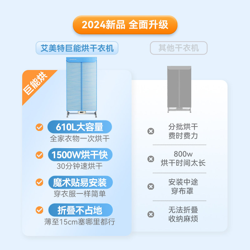 📚 艾美特折叠烘干机家用烘衣服610L大容量1500W速烘免拆收纳干衣机