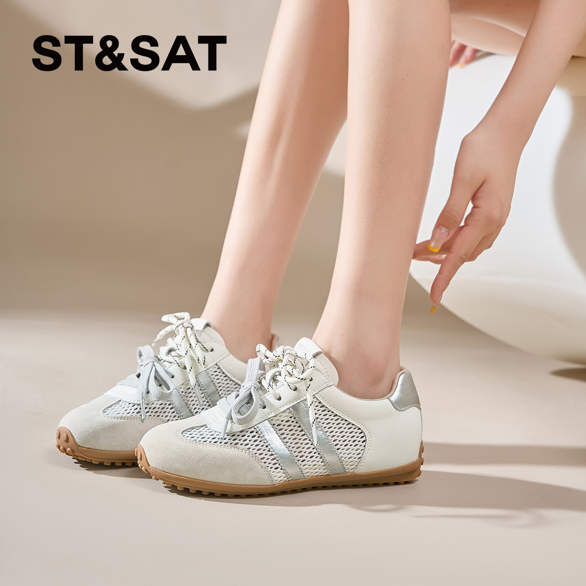 📚 星期六真皮内增高双鞋带德训鞋女2025新款网面透气复古阿甘鞋子女