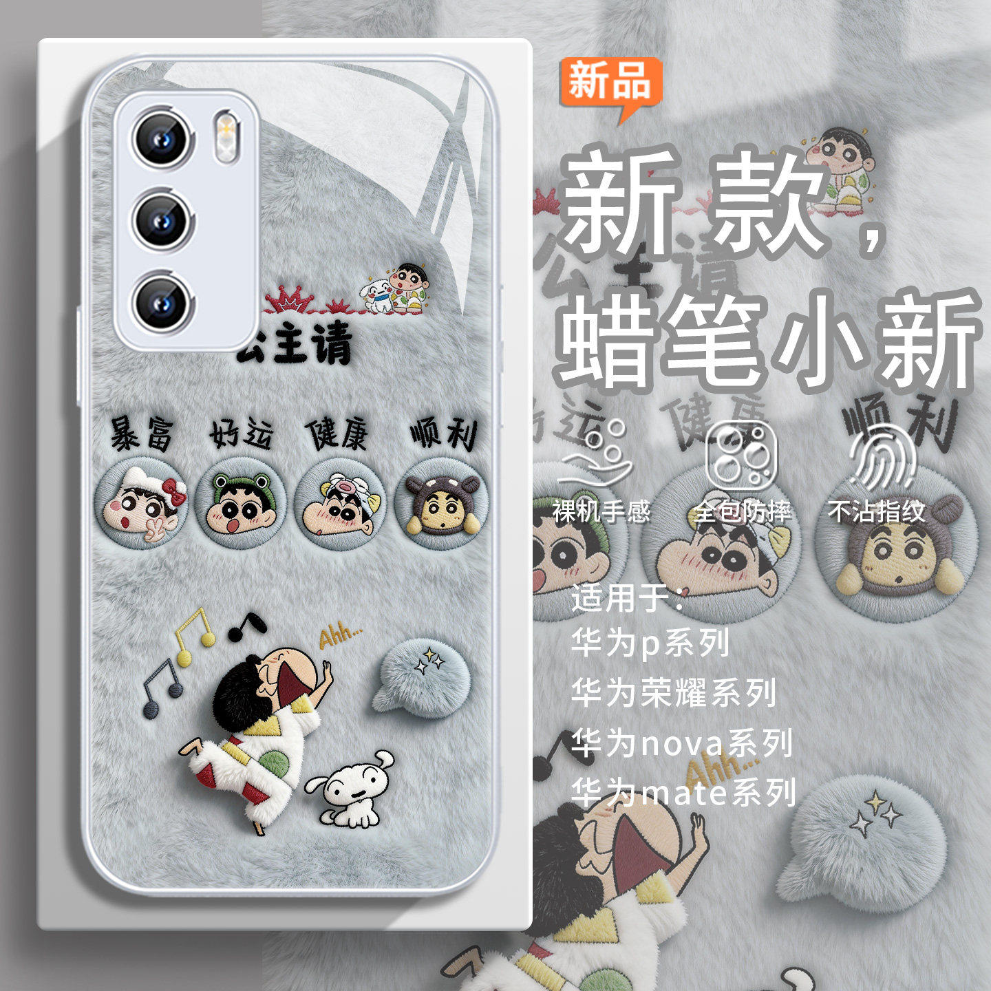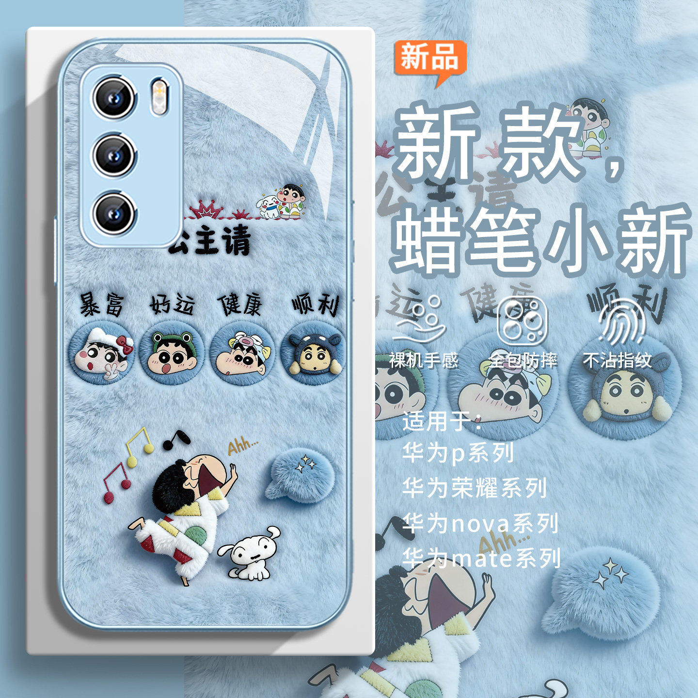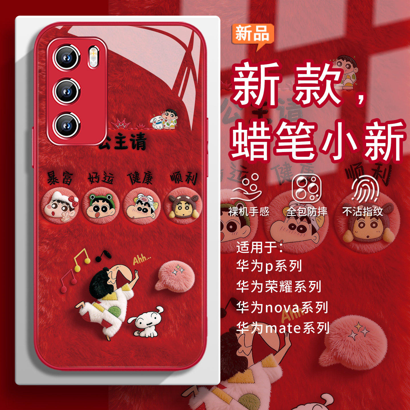 📚 适用蜡笔小新华为mate80手机保护壳荣耀magic8pro可爱nova15ultra毛绒pura70秋冬500/400粉色x70毛茸茸p60卡
