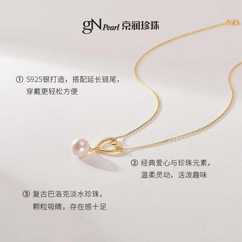 📚 京润珍珠 梦思银S925淡水珍珠吊链9-11mm巴洛克风珍珠项链礼物女D
