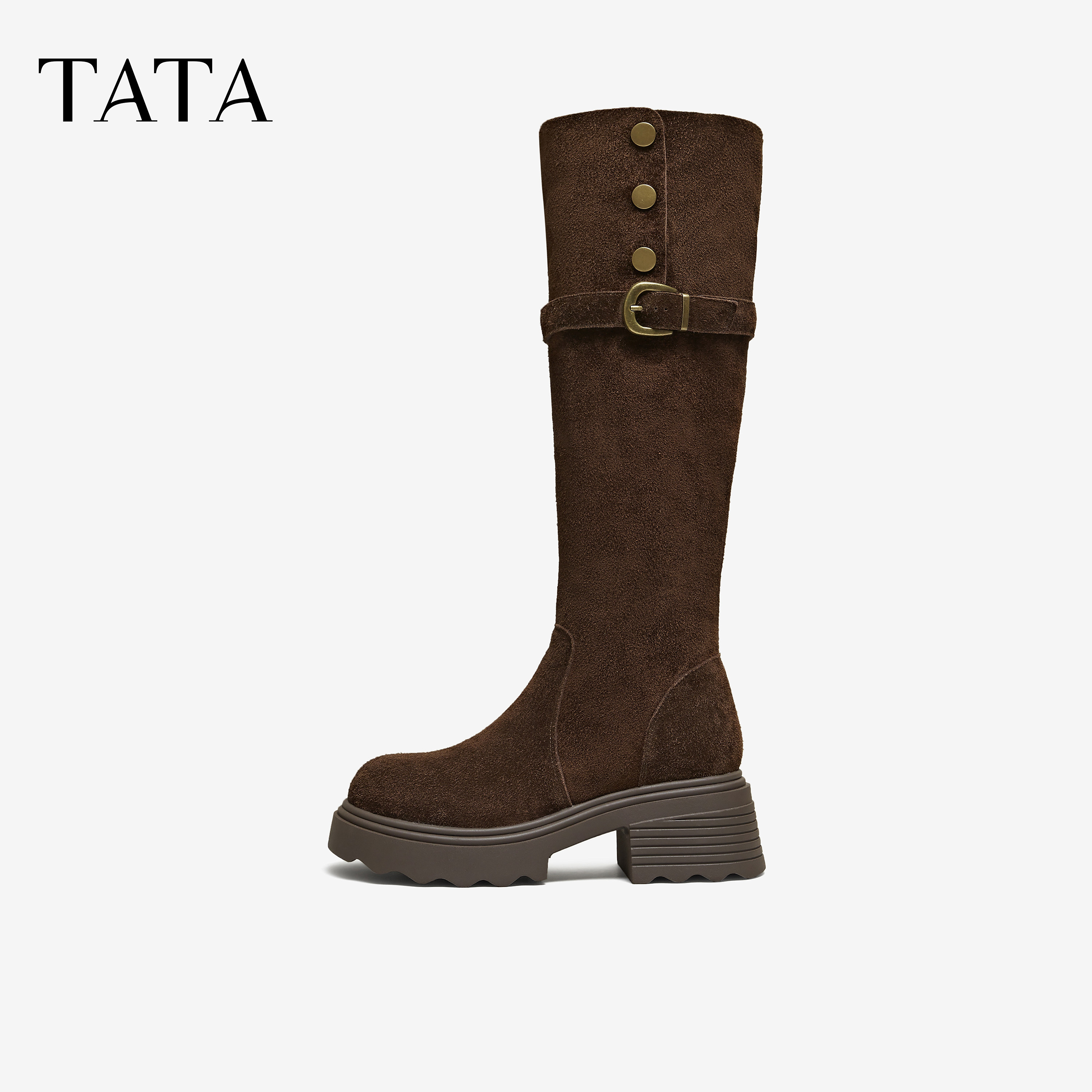 📚 TATA他她长靴牛皮过膝靴厚底显瘦弹力靴时装靴子袜靴JXH01DC5奥莱