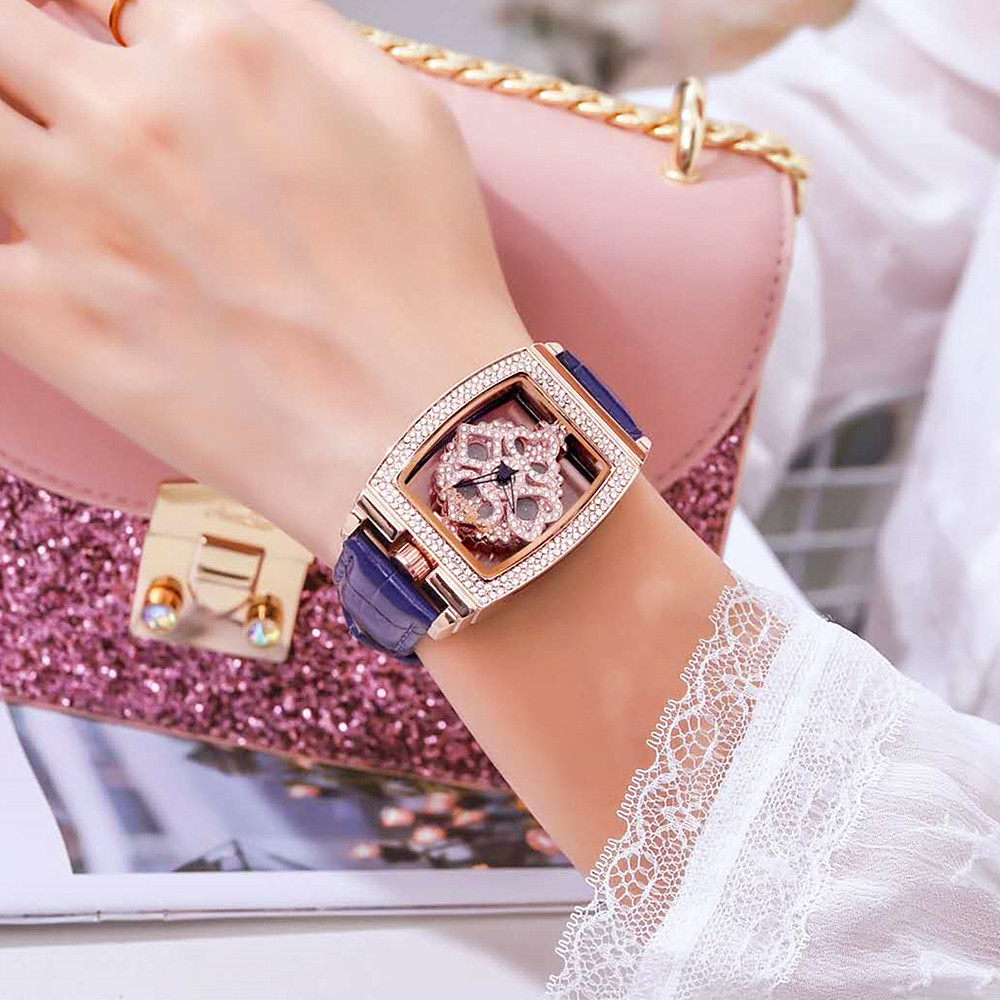 📚 时尚新款正品女士手表镶钻旋转真皮带石英性时装潮女表