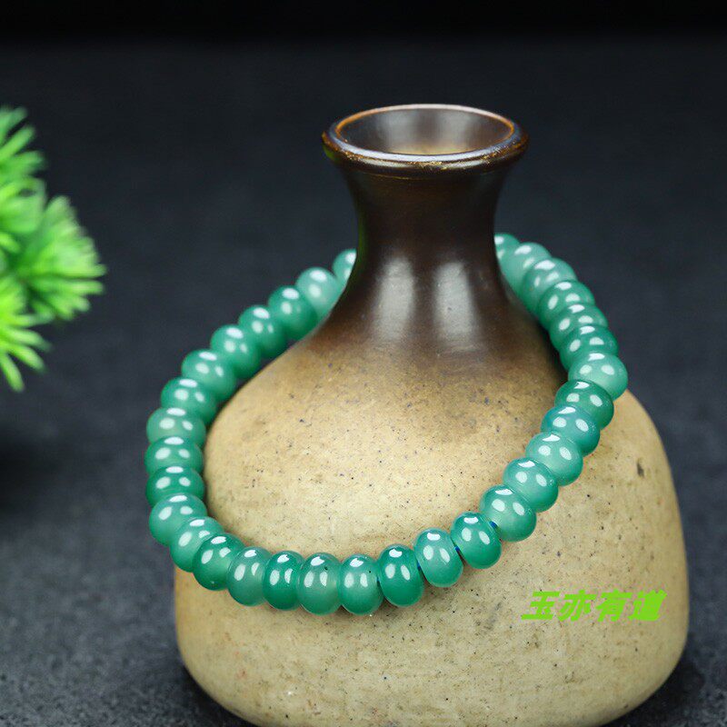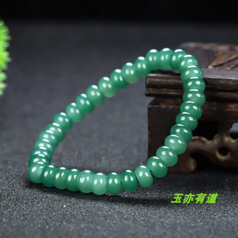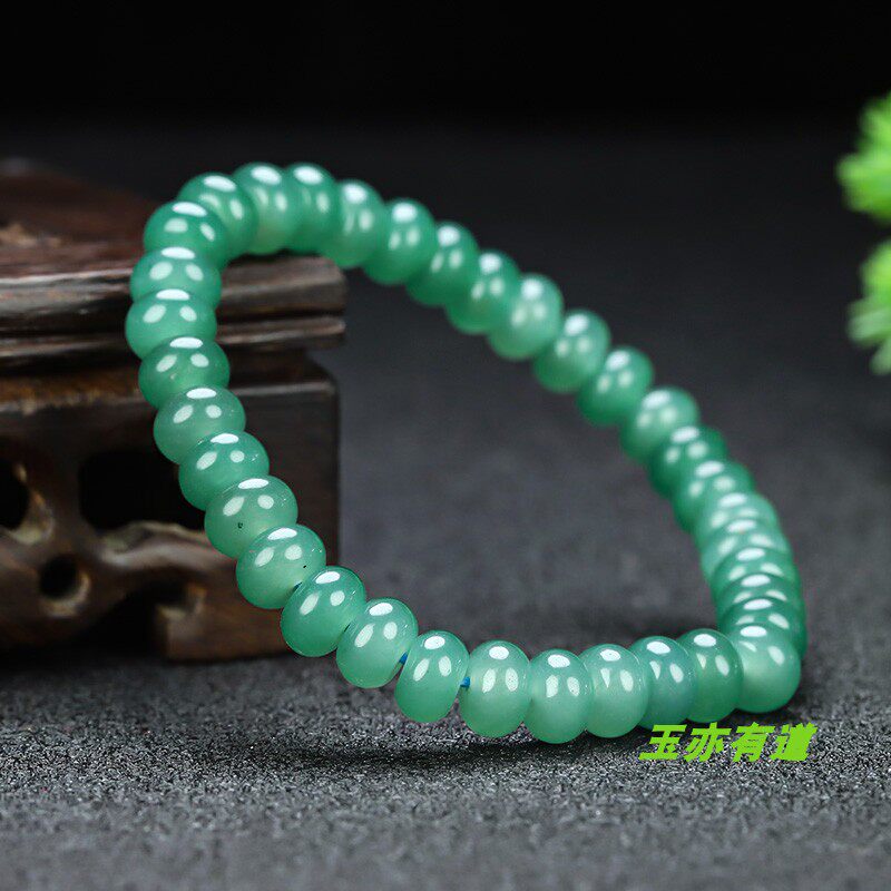 📚 天然和田玉冰湖绿手串女款单圈手链玉石冰蓝水算盘珠手链手饰配饰