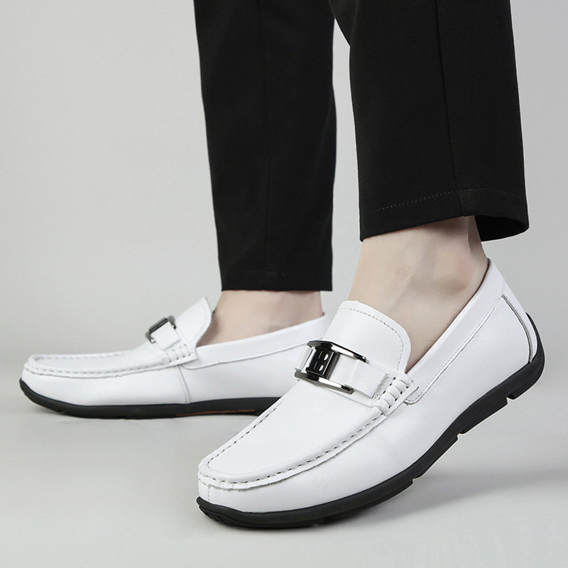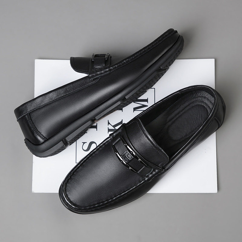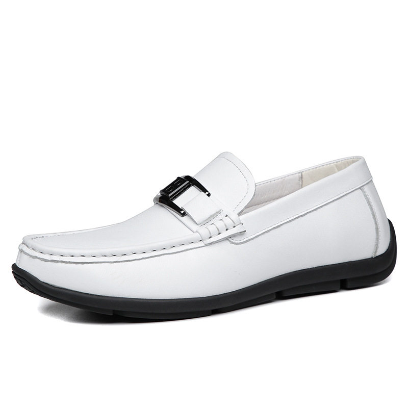 📚 新款头层牛皮豆豆鞋男士小白鞋真皮白色休闲皮鞋套脚懒人单鞋男鞋