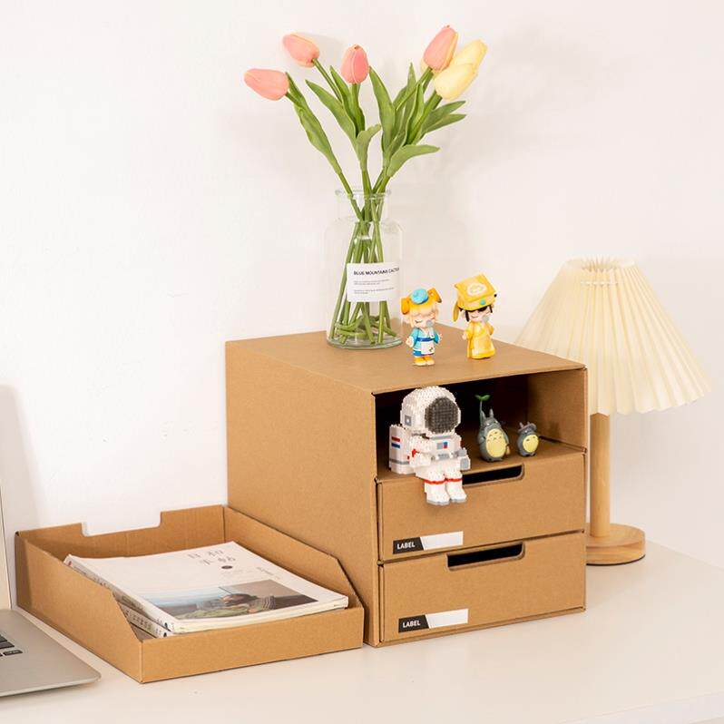 📚 日本进口精工牛皮纸收纳盒桌面抽屉式整理盒办公室文件夹储物盒