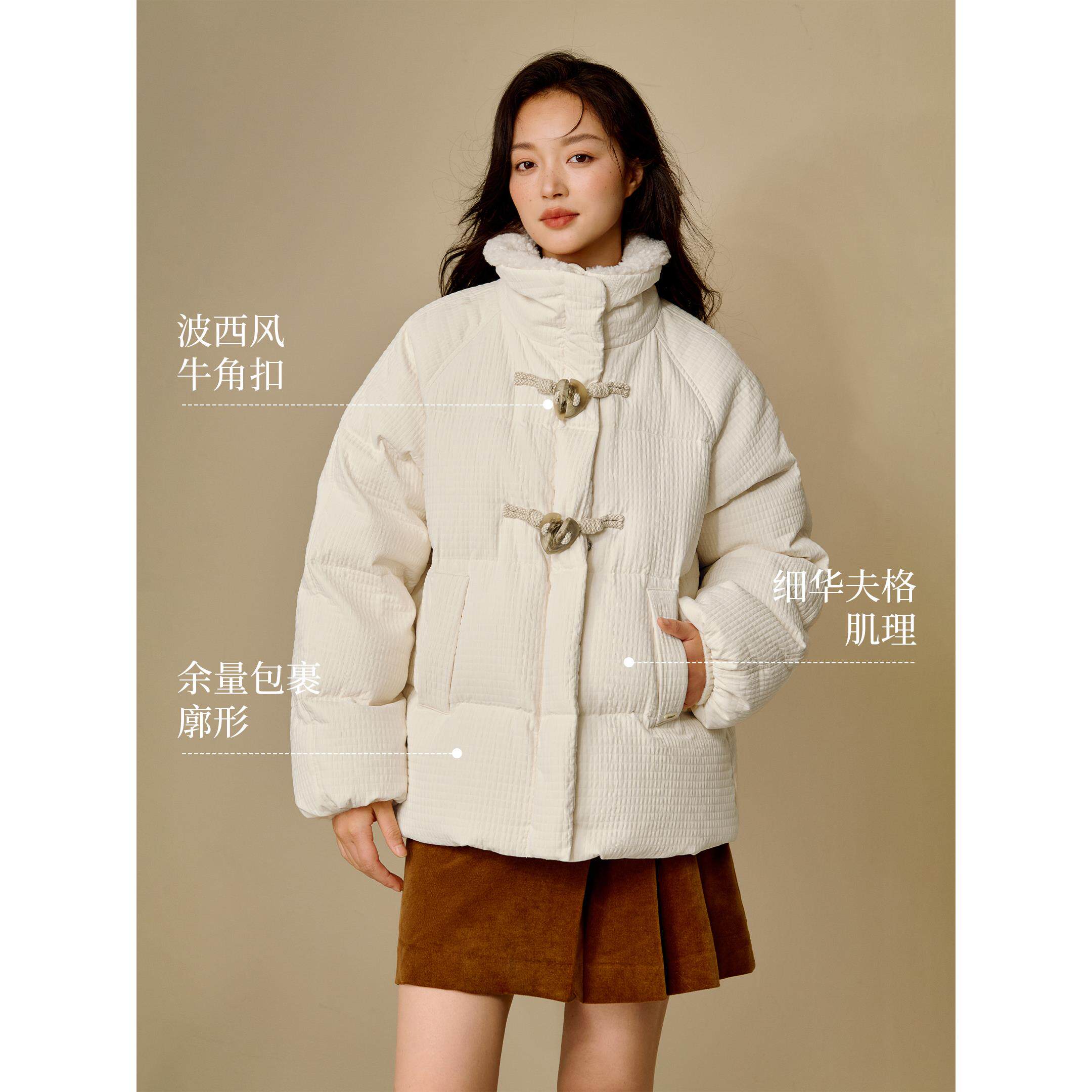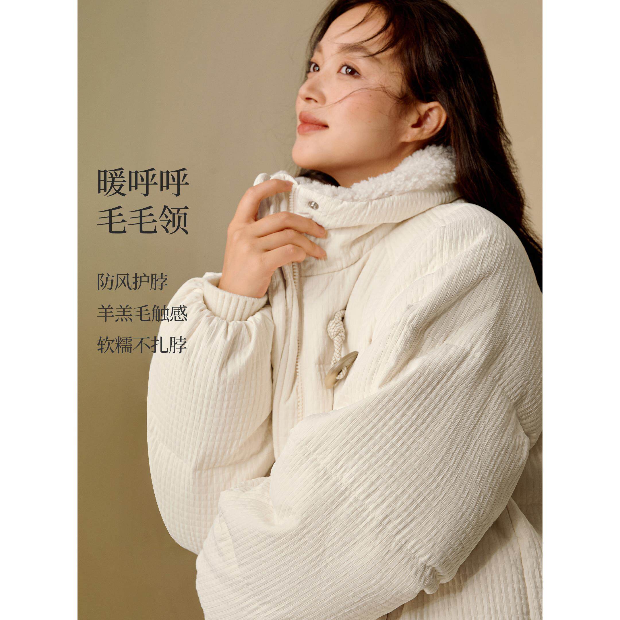 📚 羊羔毛领牛角扣厚羽绒服2025冬季女装新款时尚保暖短款面包服外套