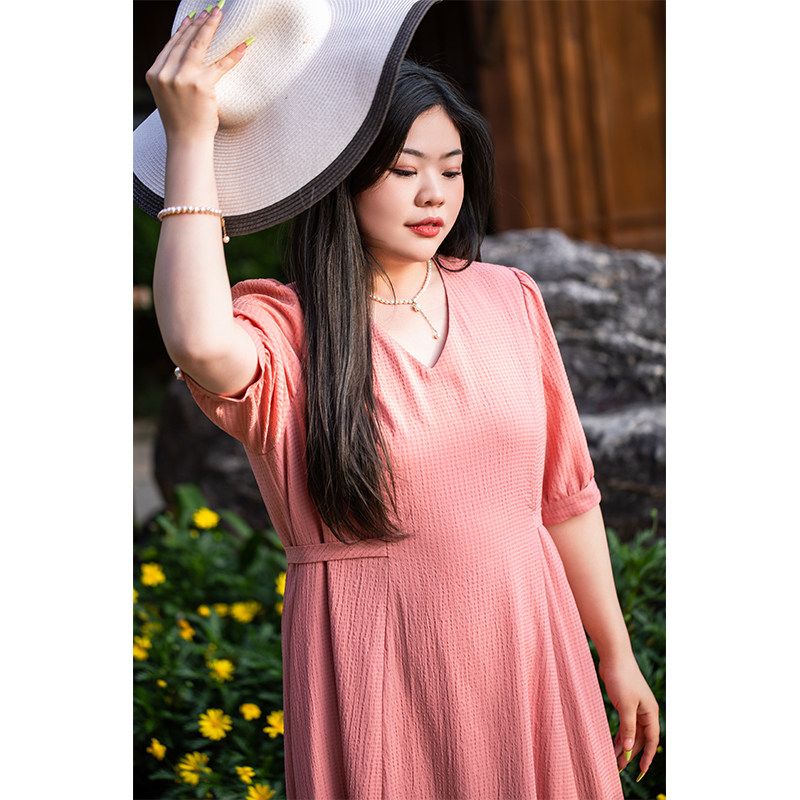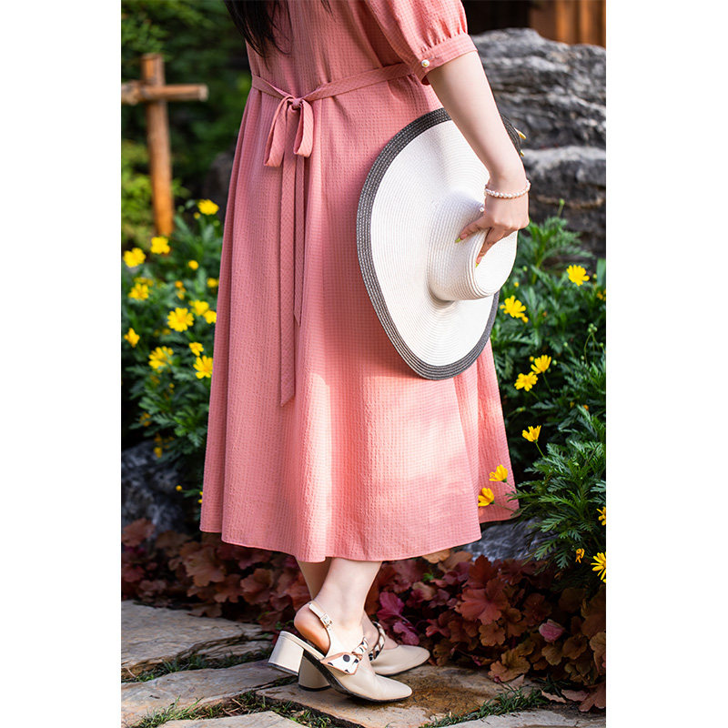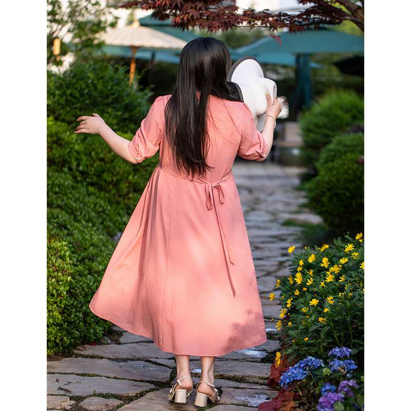 📚 美丽客栈国色天香大码连衣裙夏季法式优雅收腰胖MM粉色连衣裙