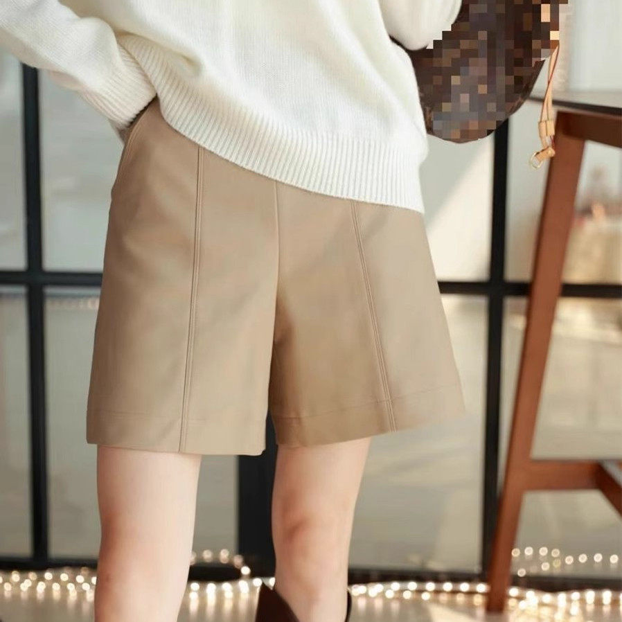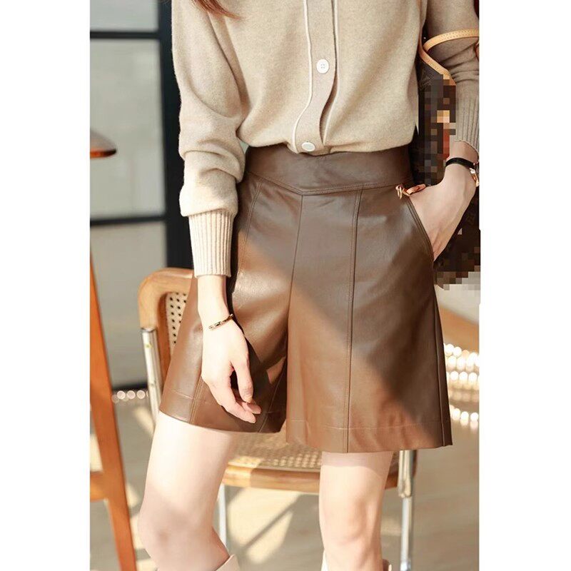 📚 特价清货阔腿绵羊皮真皮皮裤女中高腰直筒显瘦皮裤休闲五分裤潮