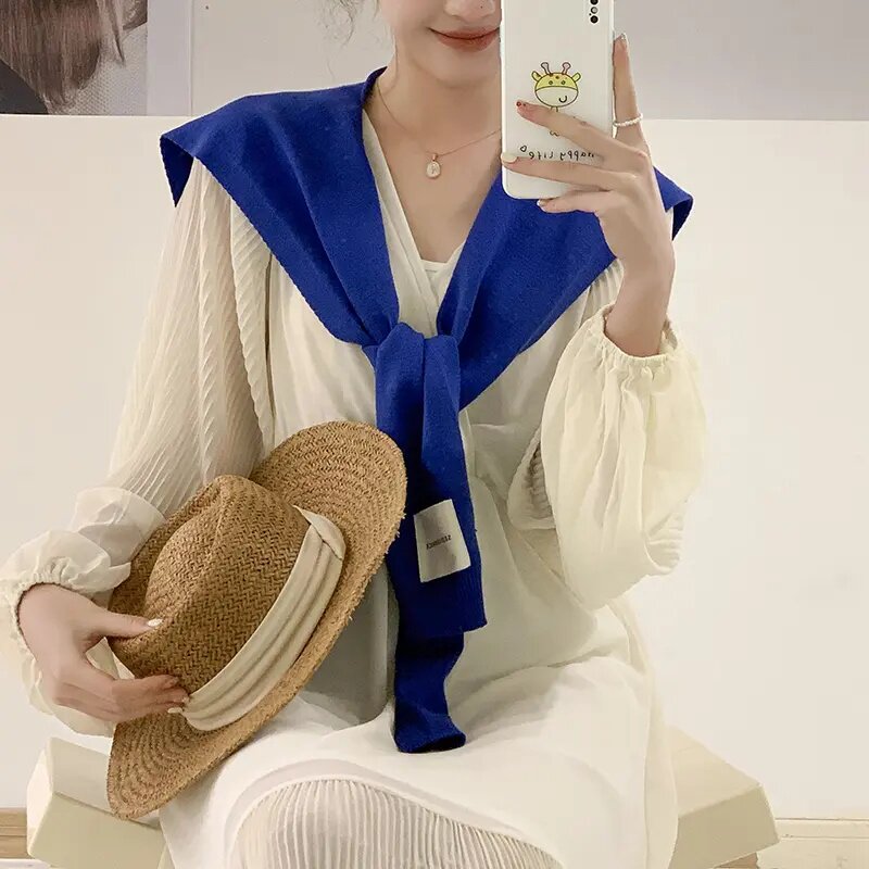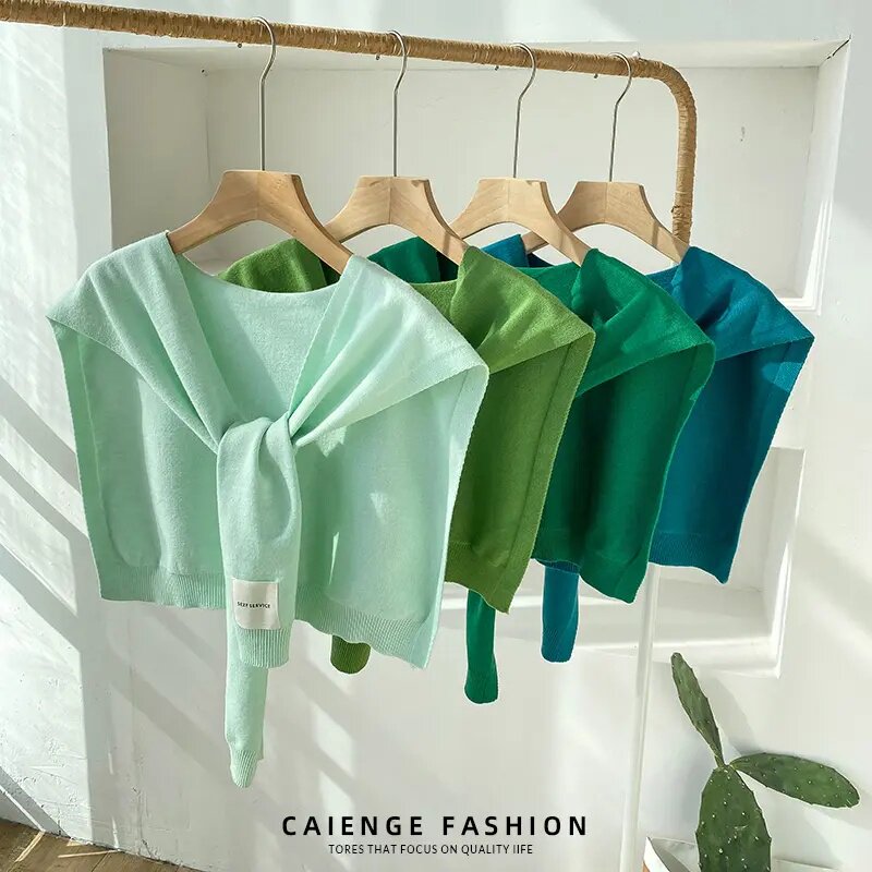 📚 网红小披肩女春夏新款纯色时尚百搭薄款针织护颈空调房配衬衫搭肩