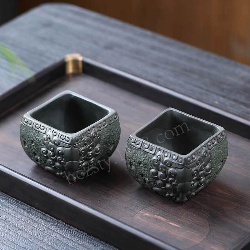 📚 宜兴紫砂杯斗牛茶杯手工品茗杯四方牛杯主人杯天青泥太湖石单杯子