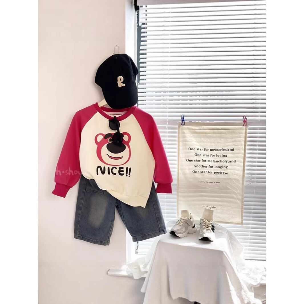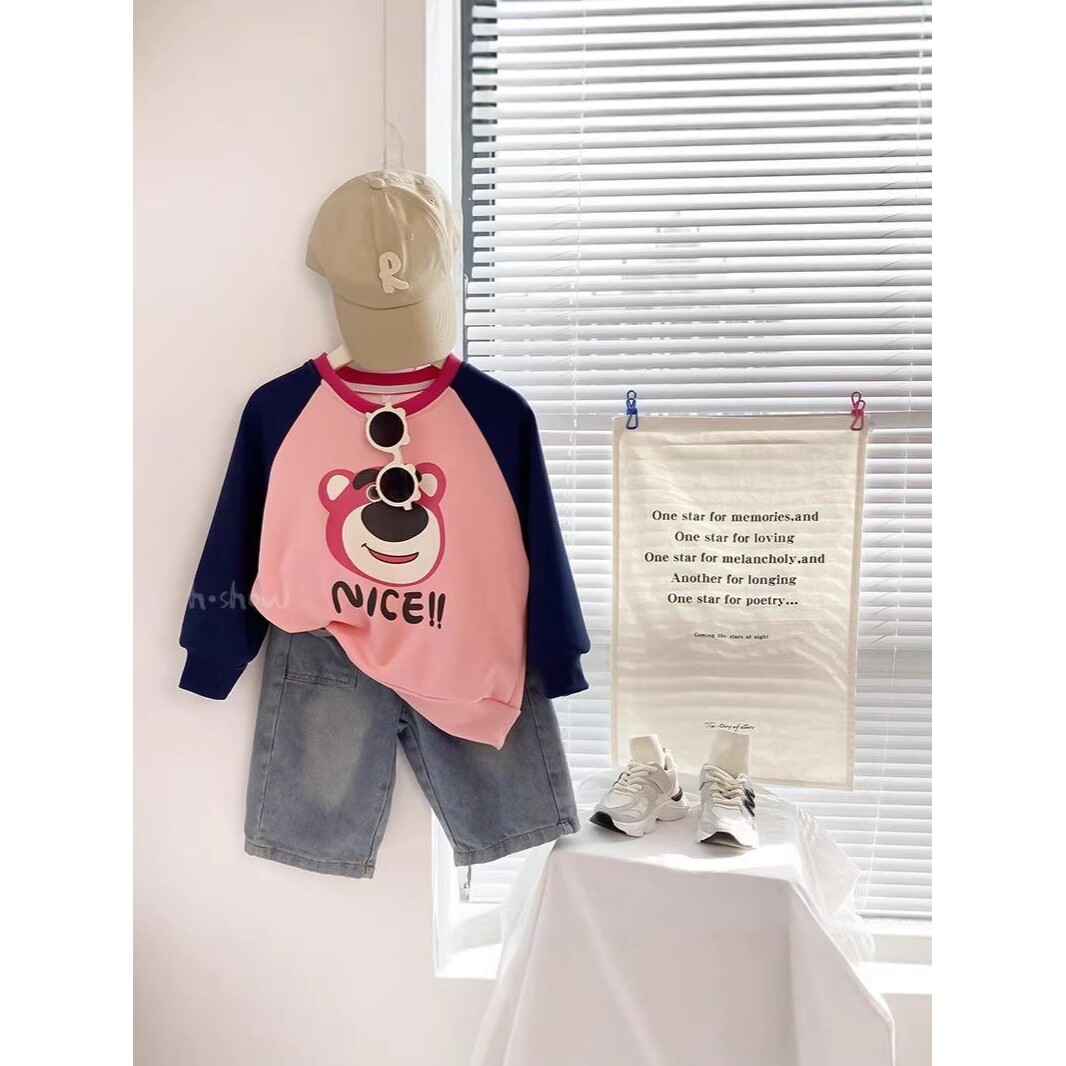 📚 进口女童薄款拼色卡通卫衣新款中大童韩版印花长袖圆领上衣潮
