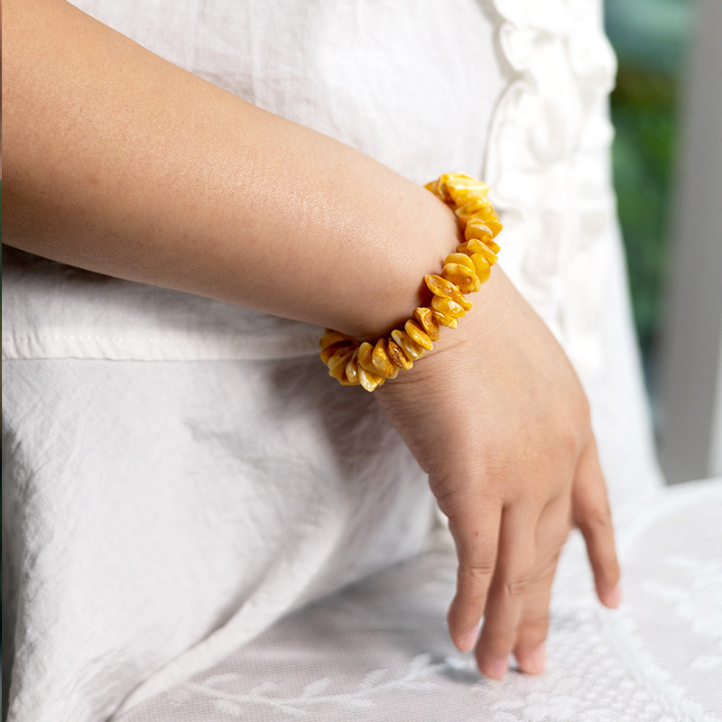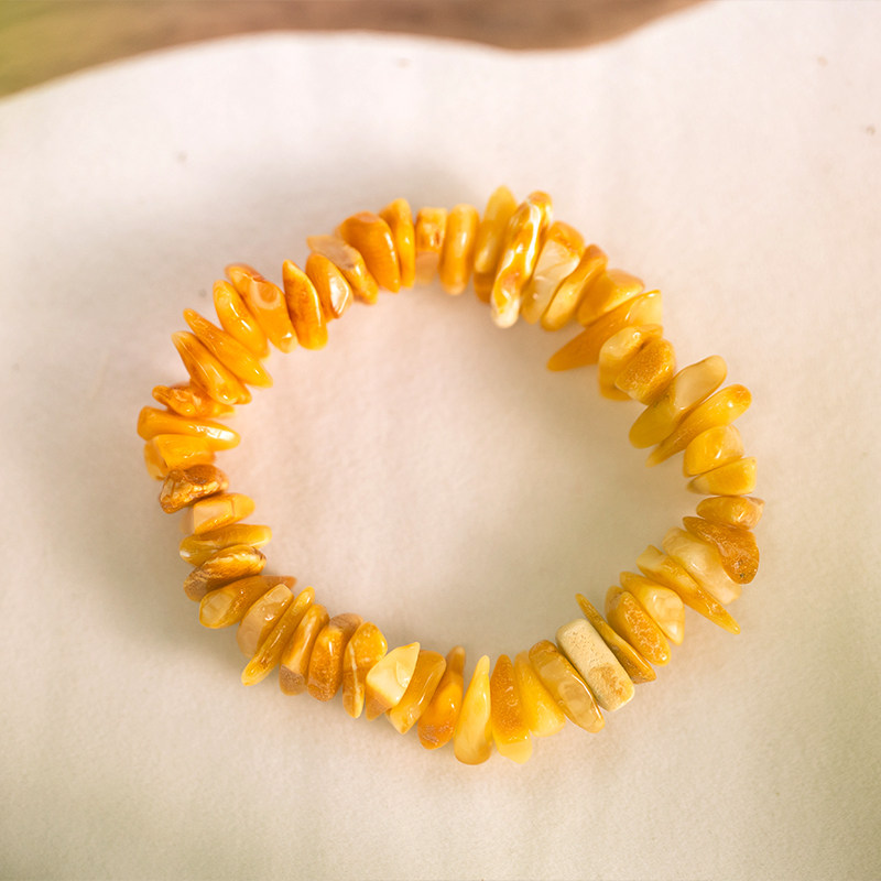 📚 天然鸡油黄蜜蜡不规则手链手串转运好运单圈碎石女满密开运手排