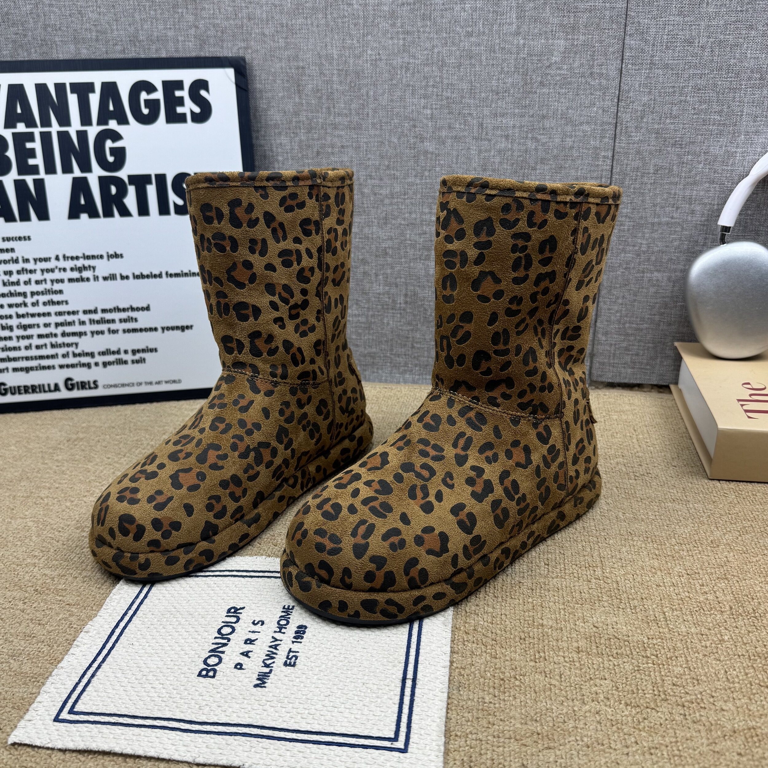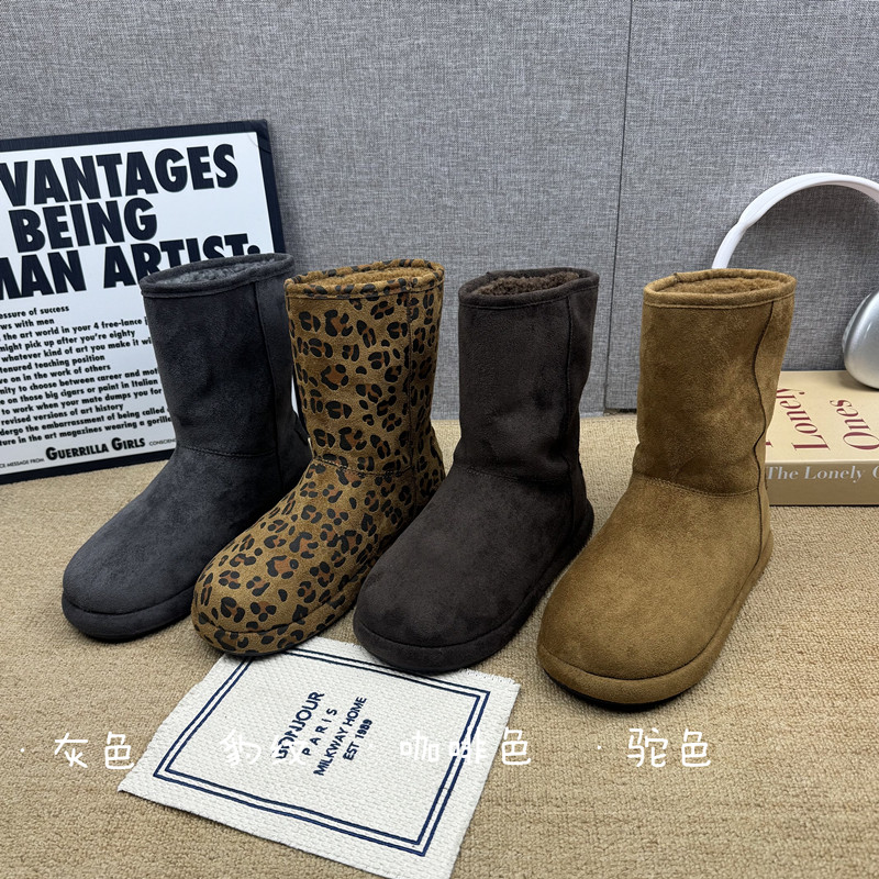 📚 加绒豹纹雪地靴女2025冬季新款勃肯鞋女平底短靴保暖棉鞋中筒靴子