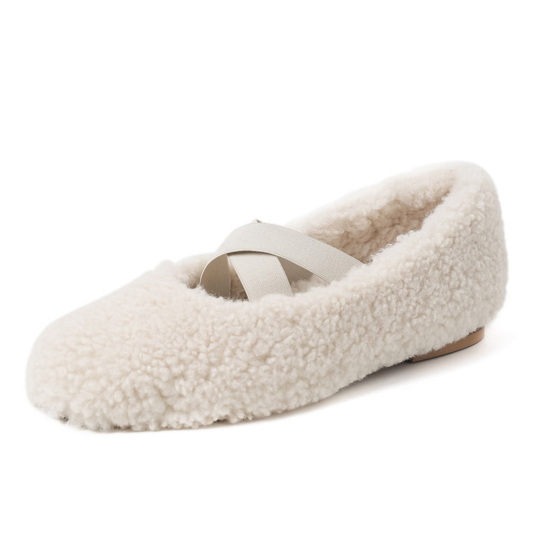 📚 羊皮毛一体~交叉带玛丽珍毛毛鞋女2025冬季保暖羊羔毛芭蕾舞单鞋