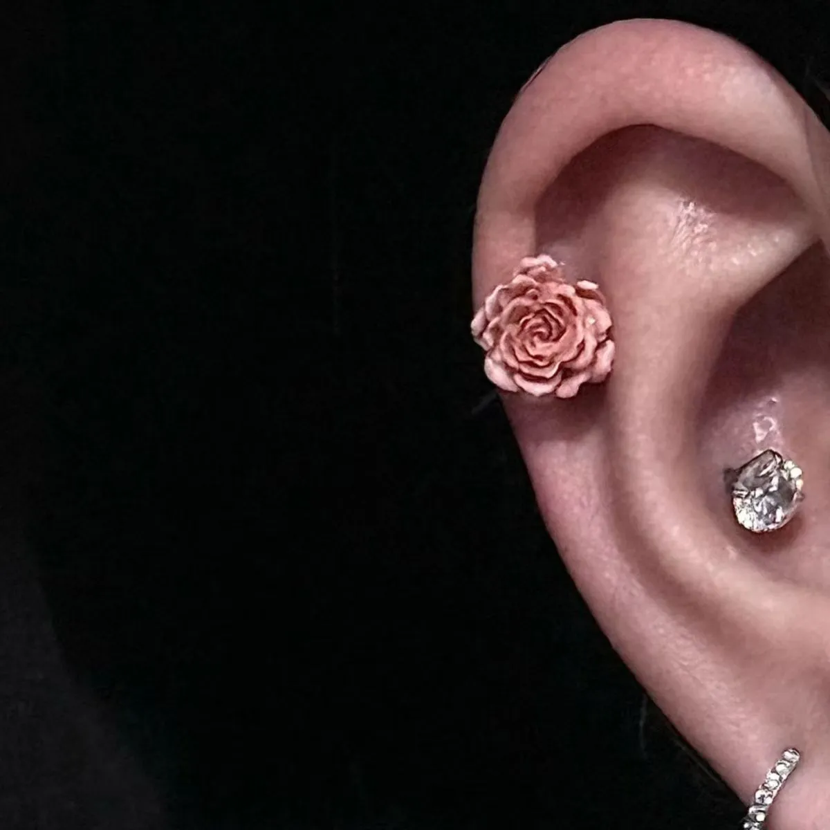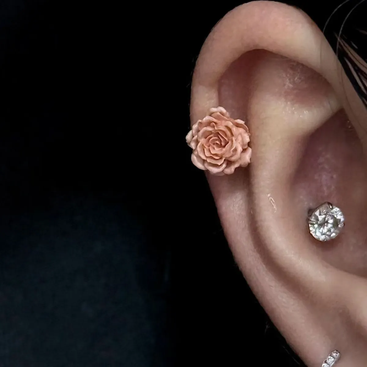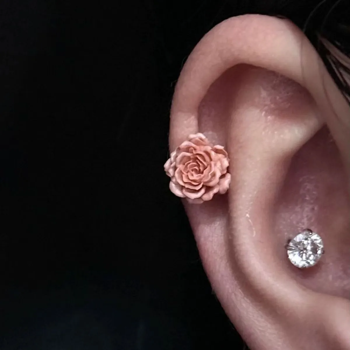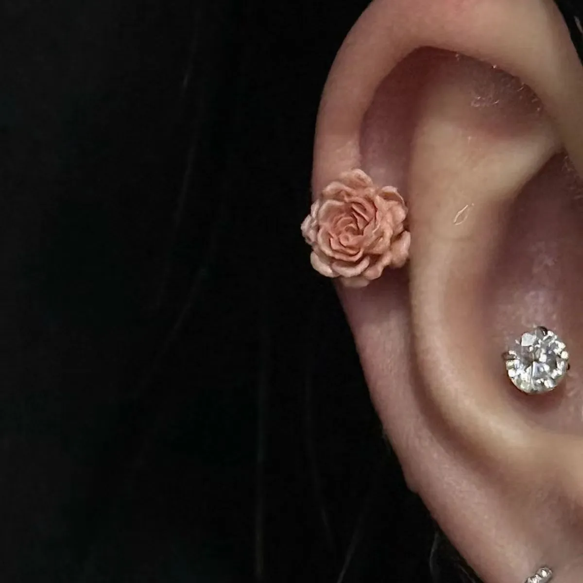 📚 卡布奇诺玫瑰耳骨钉超仙小众耳钉钛钢不掉色耳骨洞耳环女新款