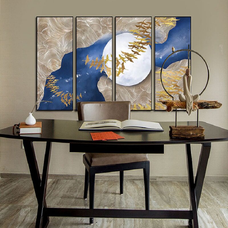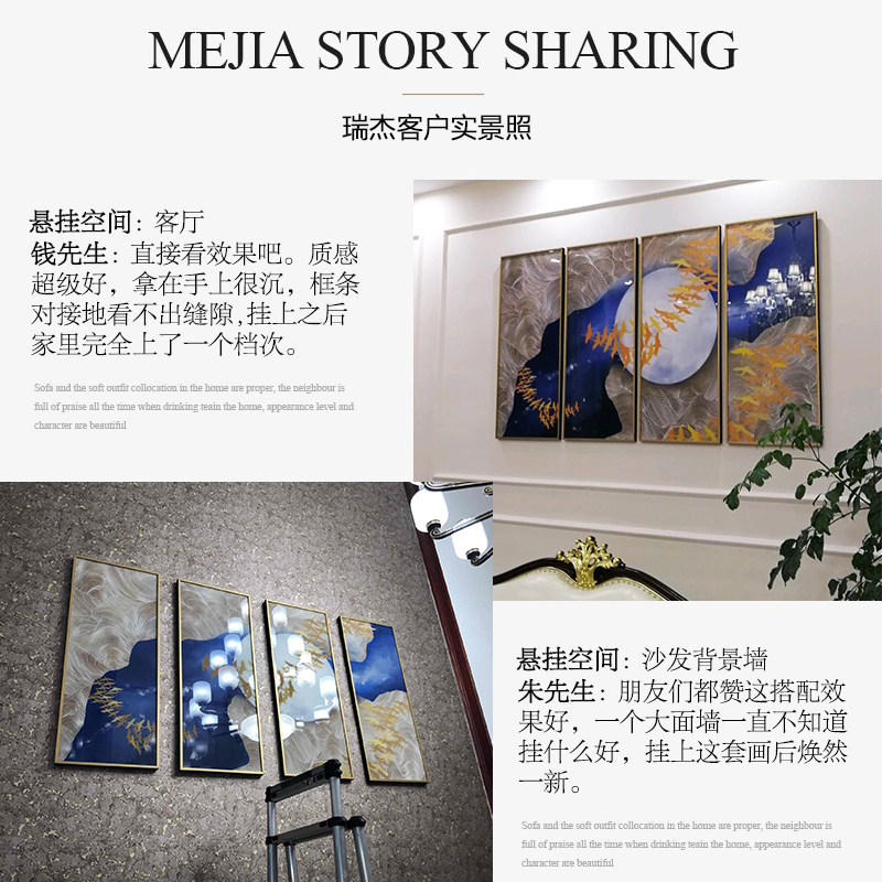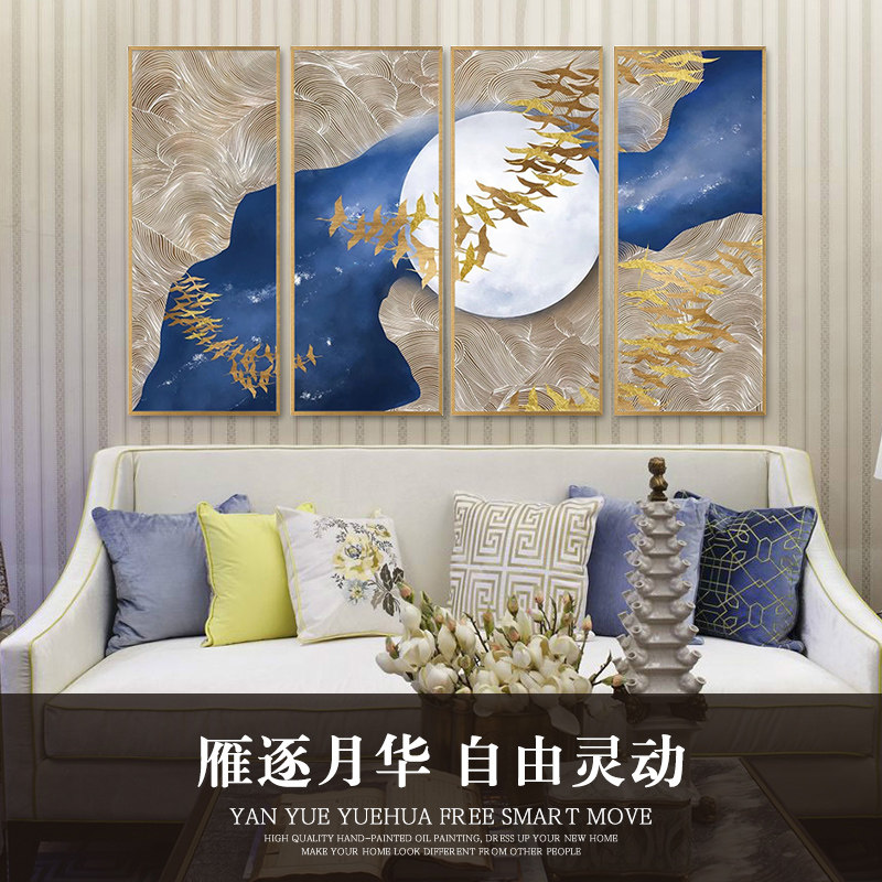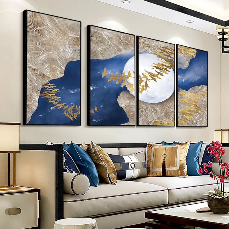 📚 RJ瑞杰 客厅沙发背景t墙装饰画 办公室燕归巢挂画别墅四联晶瓷