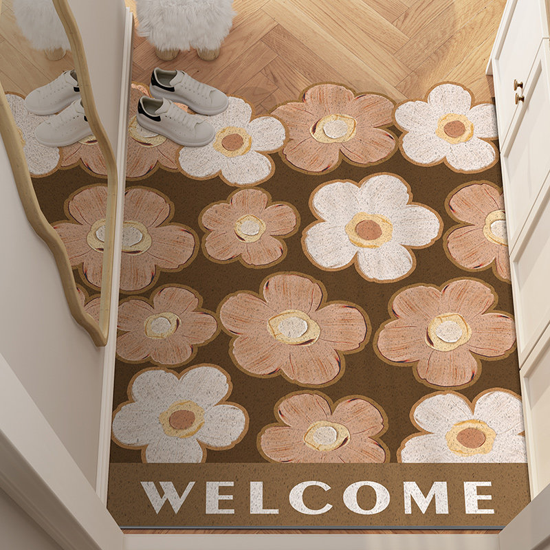 📚 花卉入户门丝圈地垫进门门口x地毯玄关刮泥门垫耐脏除尘脚垫可裁