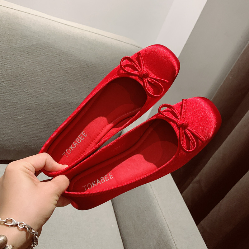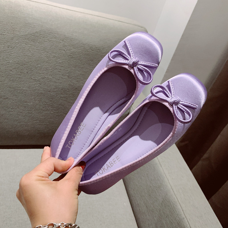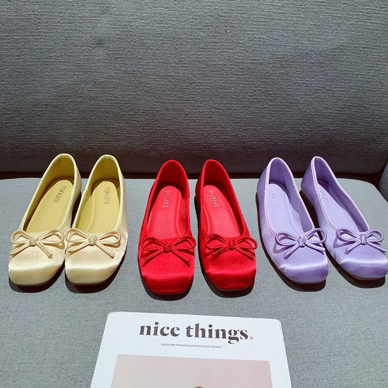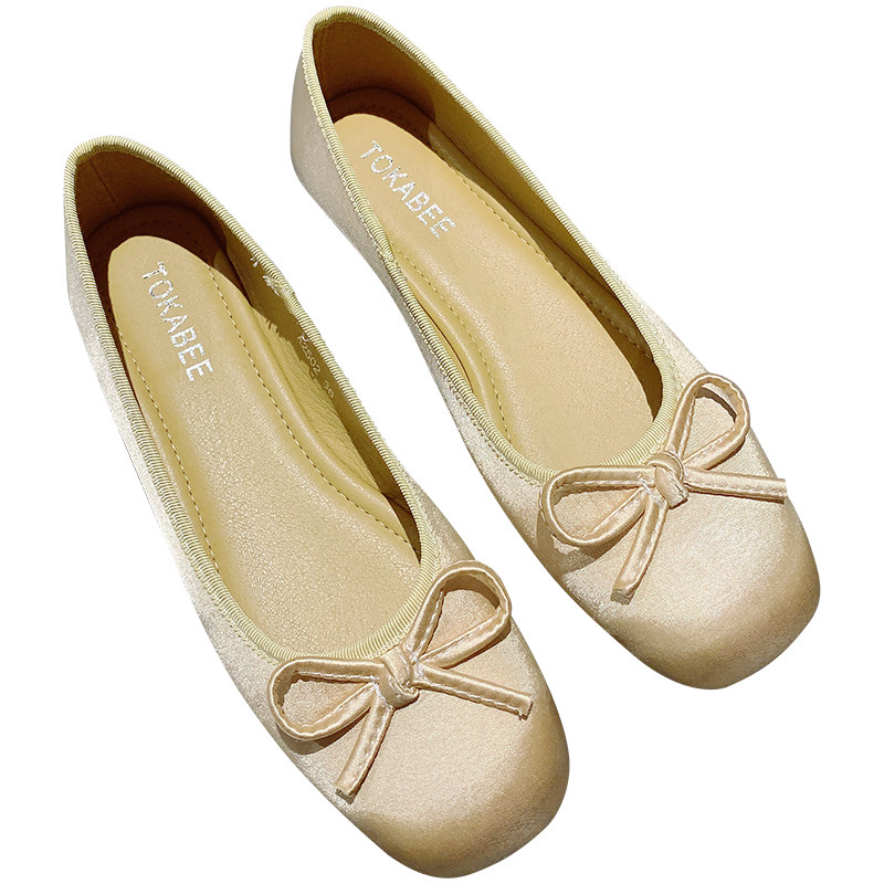 📚 香风蝴蝶结软底豆豆鞋女2026年新款一脚套浅口方头布面平底单鞋