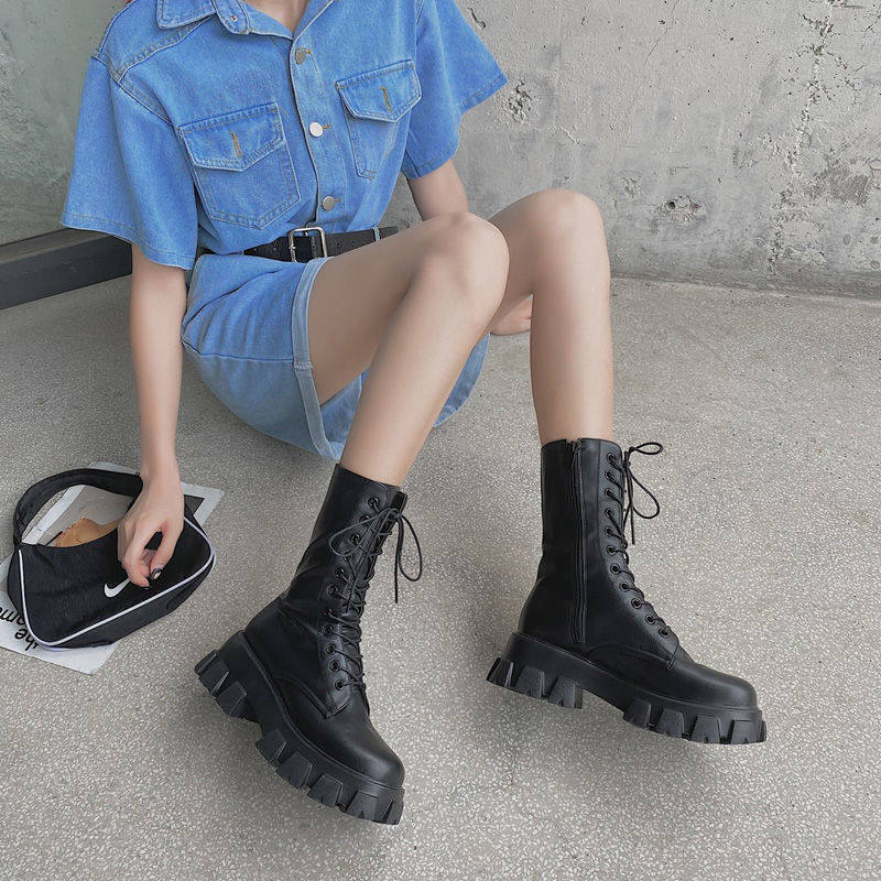 📚 白色马丁靴夏季薄款女透气潮酷yins英伦风小个子厚底中筒靴子夏款