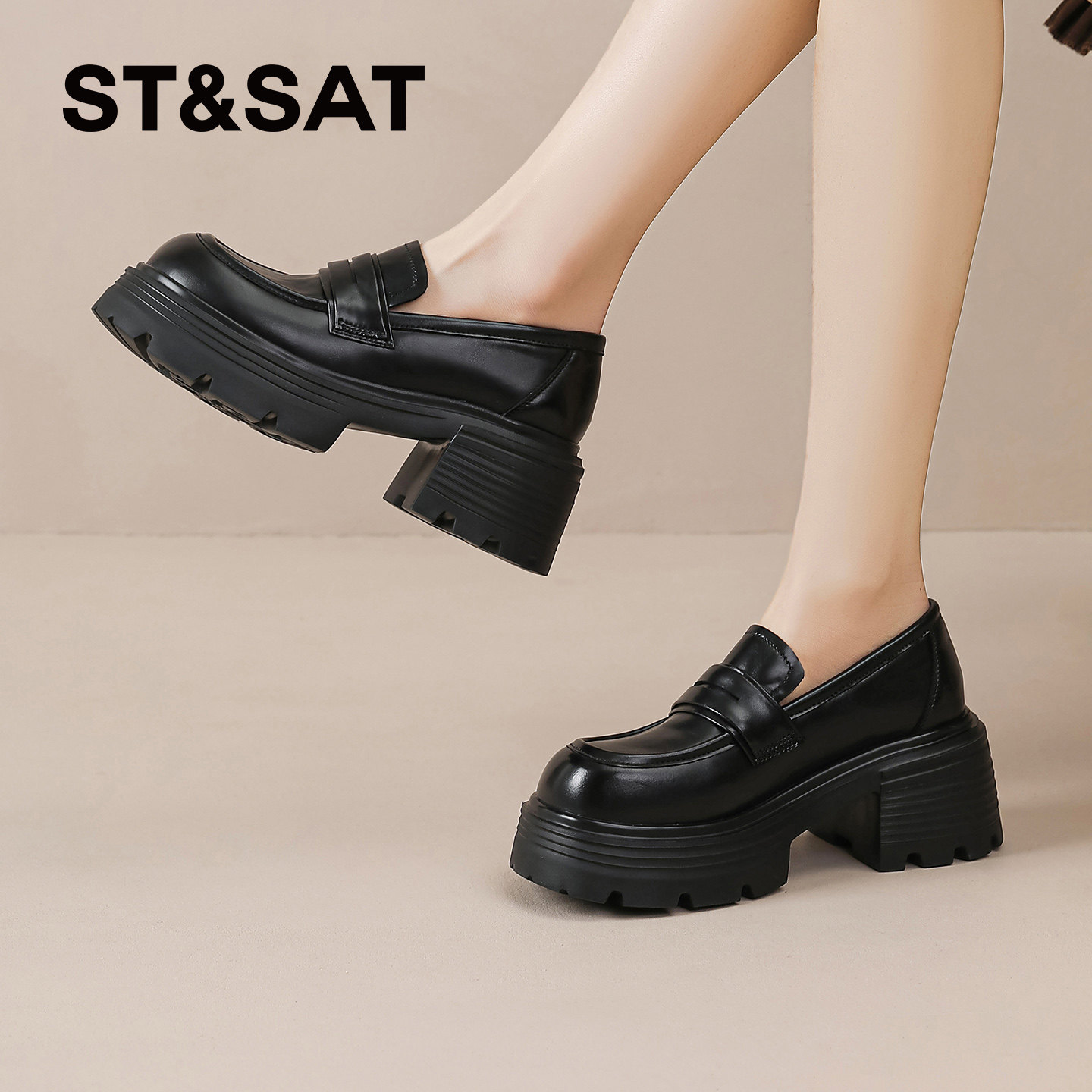 📚 星期六厚底乐福鞋女2026新款春黑色英伦风小皮鞋女士通勤复古单鞋