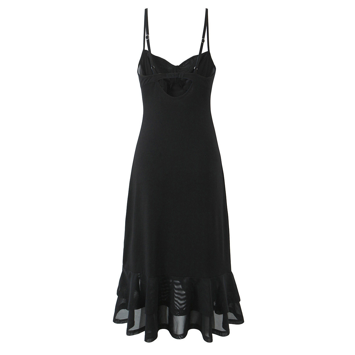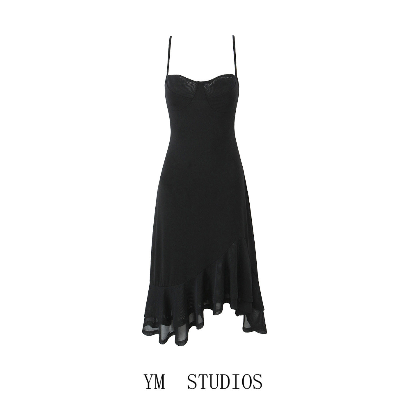 📚 【包邮】法式优雅弹力修身黑色不规则吊带裙高级感收腰鱼尾连衣裙