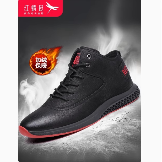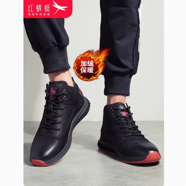 📚 红蜻蜓男鞋冬季新款运动加绒保暖真皮鞋冬潮流休闲鞋皮鞋断码清仓