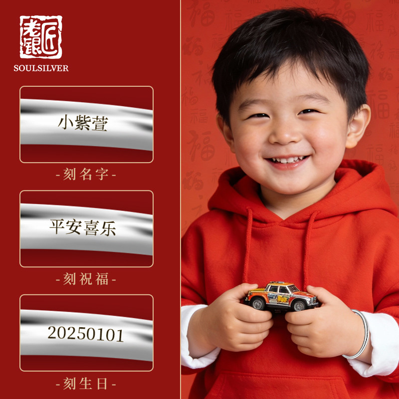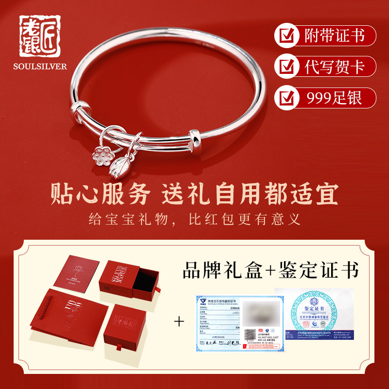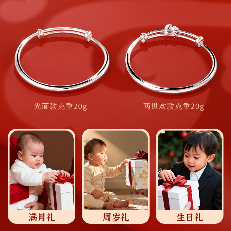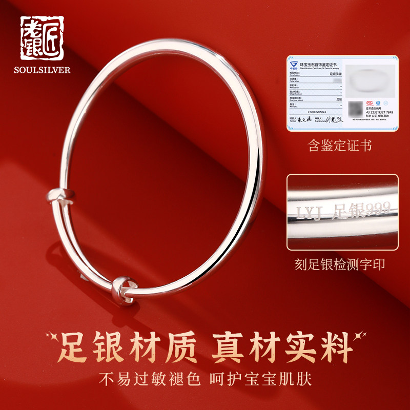 📚 老银匠s999足银大童手镯光面宝宝手镯纯银满月周岁婴儿小孩银手镯