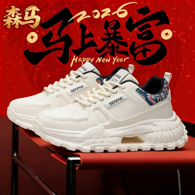 📚 森马网红爆款男鞋夏季青少年运动休闲跑步厚底增高百搭小白老爹鞋