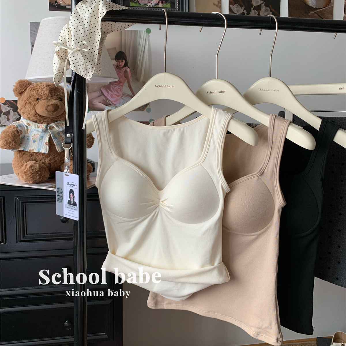 📚 保暖磨毛发热吊带背心女内搭带胸垫免穿文胸性感修身打底无袖上衣