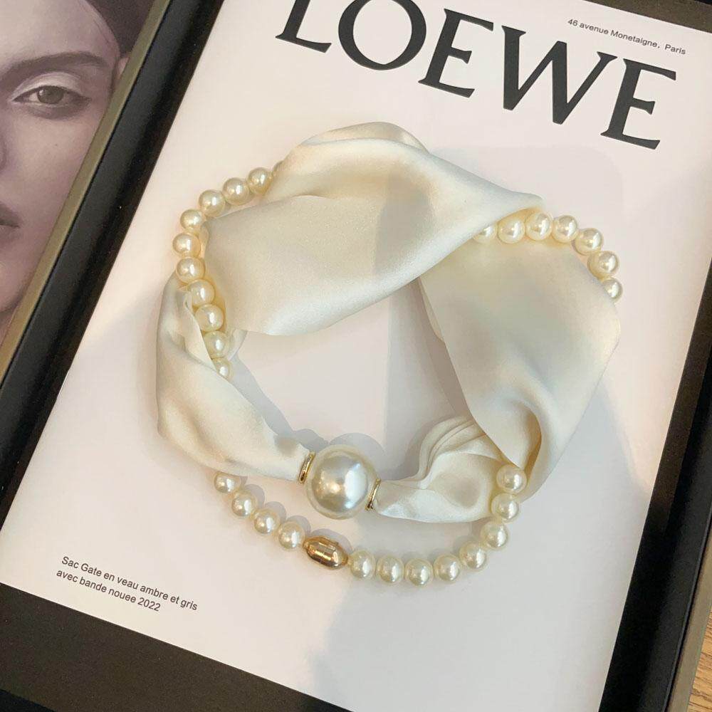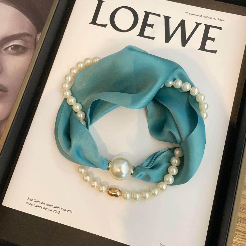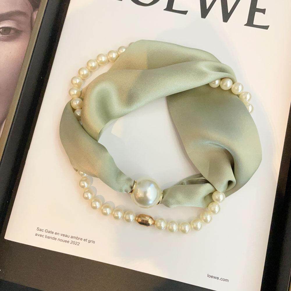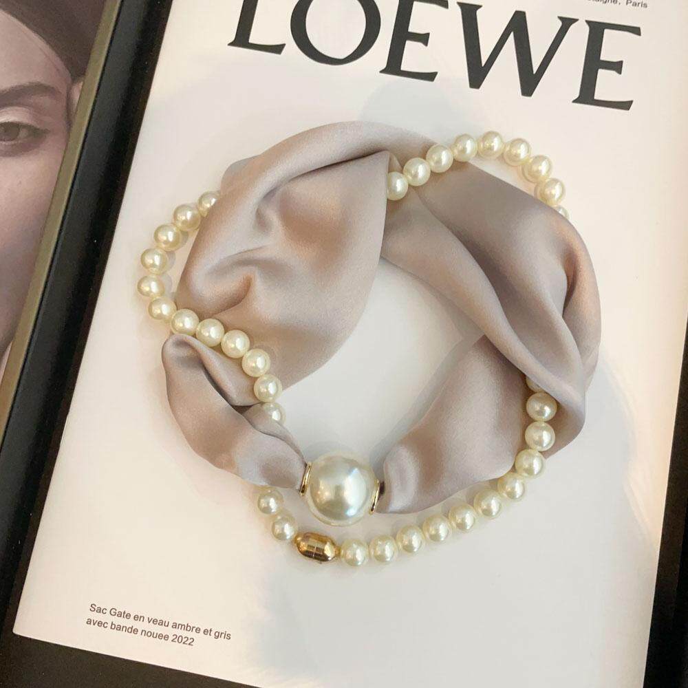 📚 高级感纯色仿珍珠项链丝丝巾女春夏薄领巾磁吸扣丝纯色锁骨链