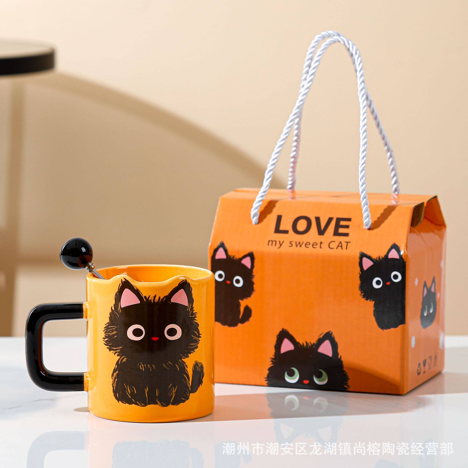 📚 情侣杯小黑猫对杯陶瓷马克杯新婚礼物咖啡杯生日礼物伴手礼