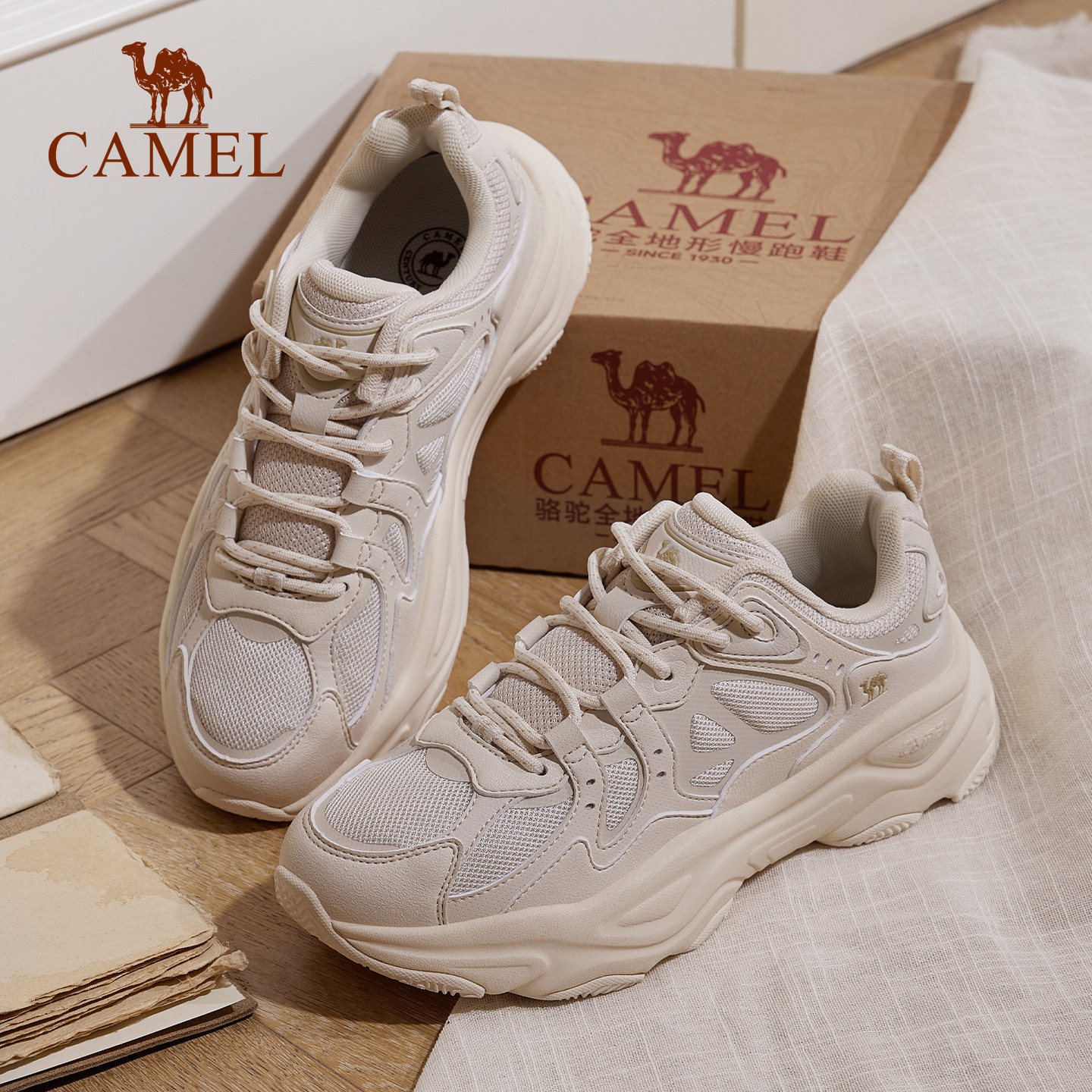 📚 骆驼星火老爹鞋女鞋网面休闲鞋运动鞋厚底缓震百搭鞋子复古跑步鞋