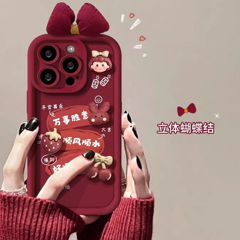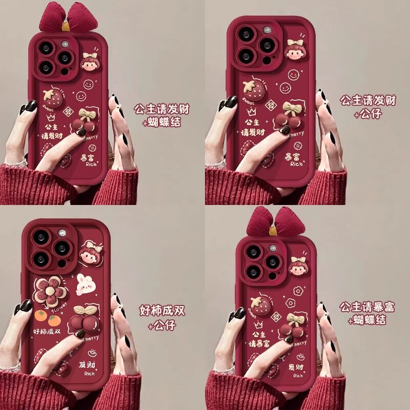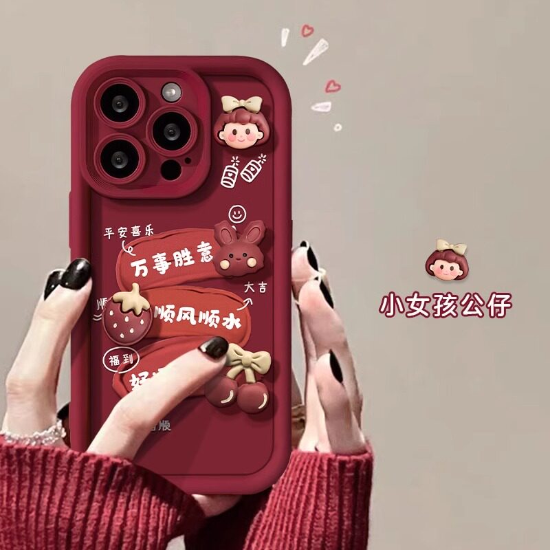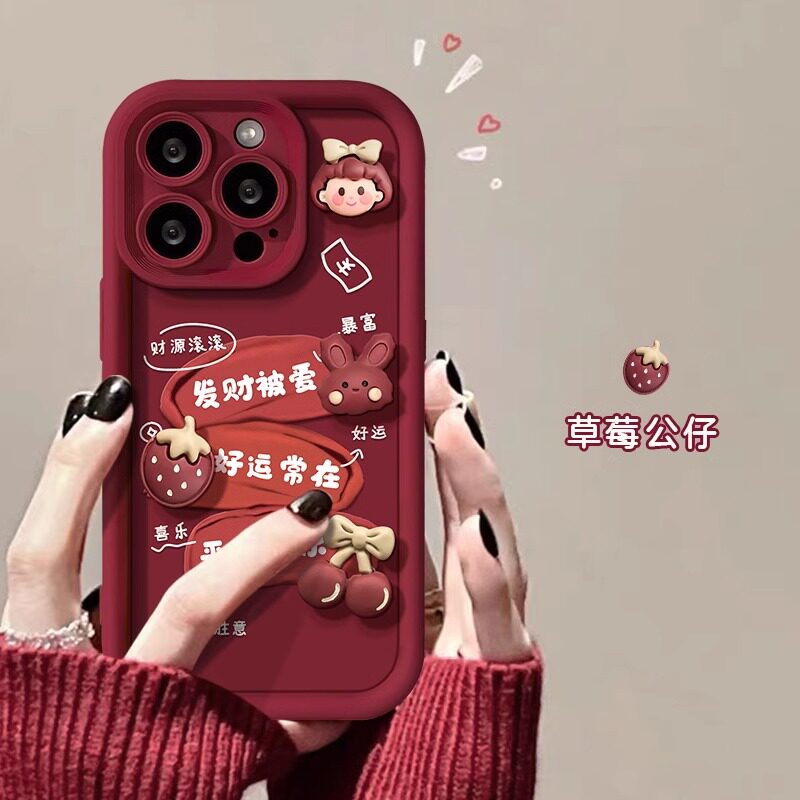 📚 发财被爱适用苹果15手机壳苹果14promax新款iPhone13/12/11新年xr/xsmax创意ipx立体公仔7/8plus红色se2/3女