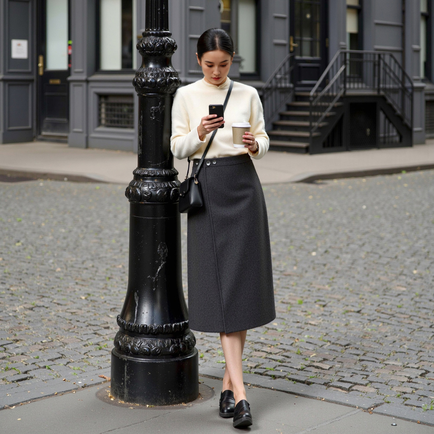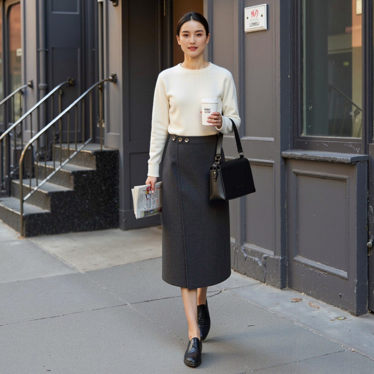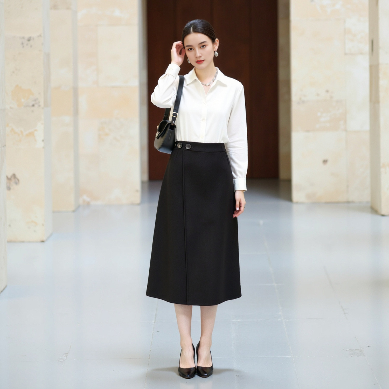 📚 秋冬100%纯羊毛呢子半身裙双面绵羊毛一片式中长款直筒包臀过膝裙